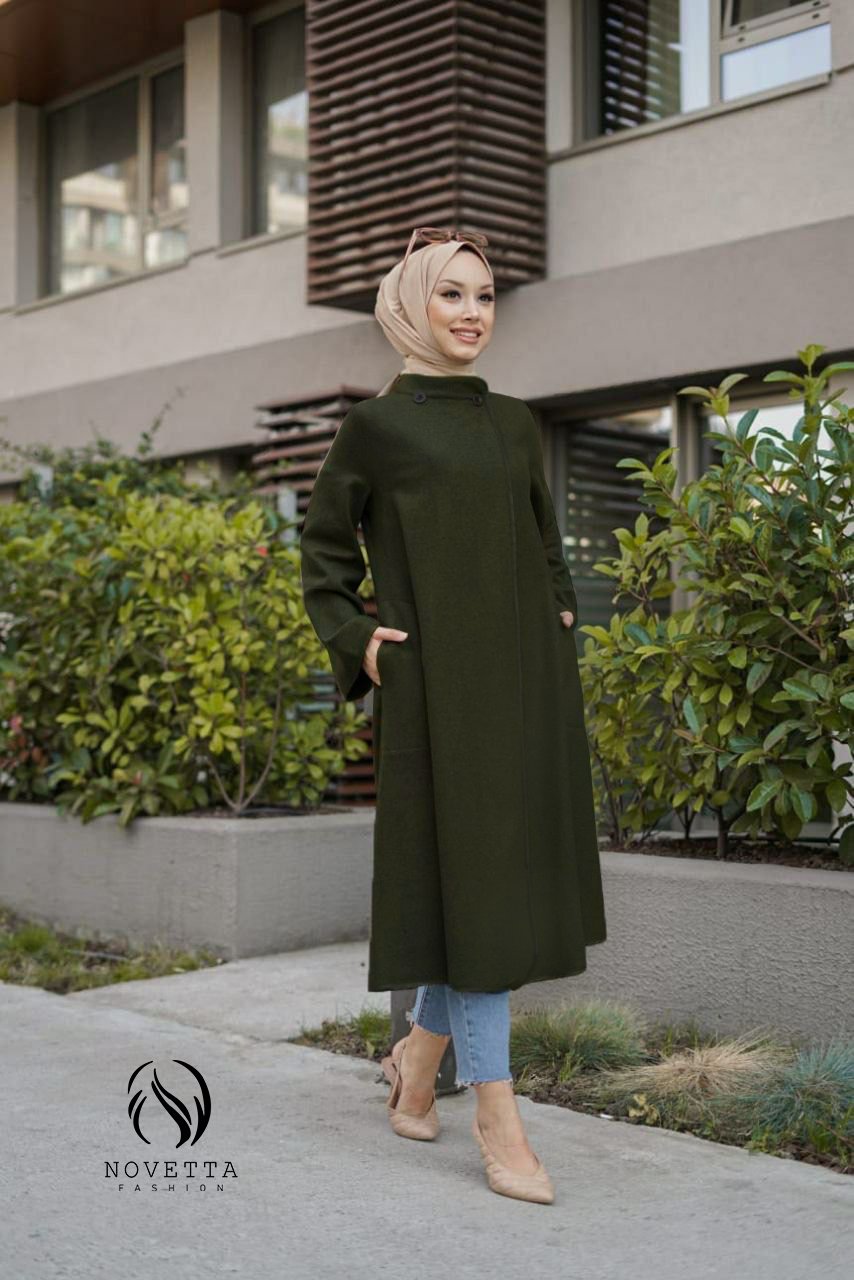معطف شتوي طويل باللون الخمري، تصميم عملي بسيط يمنحك دفء وأناقة في إطلالتك اليومية.بخامة جوخ ناعم