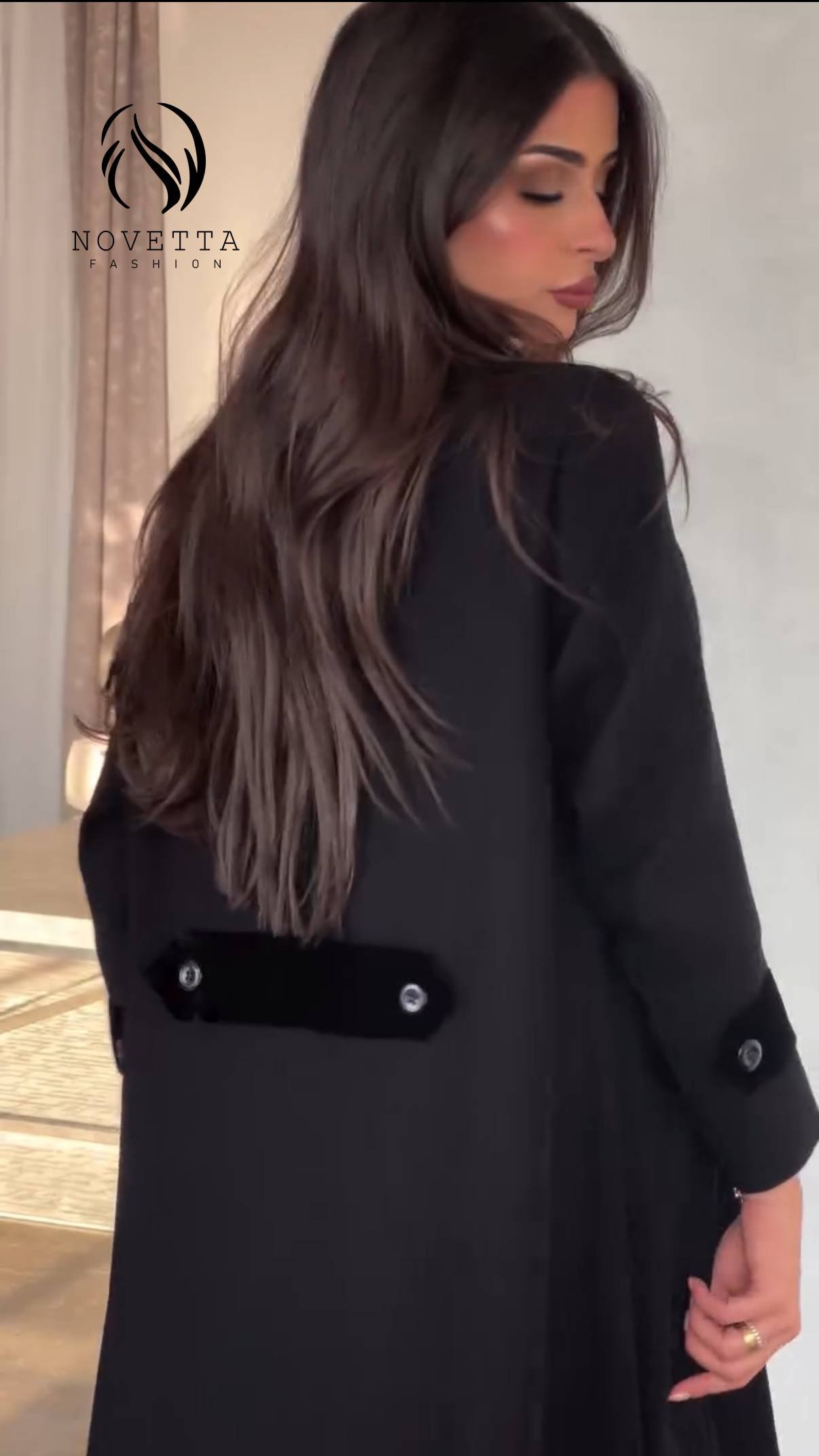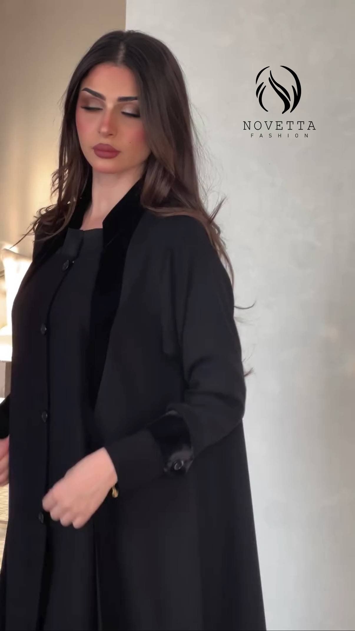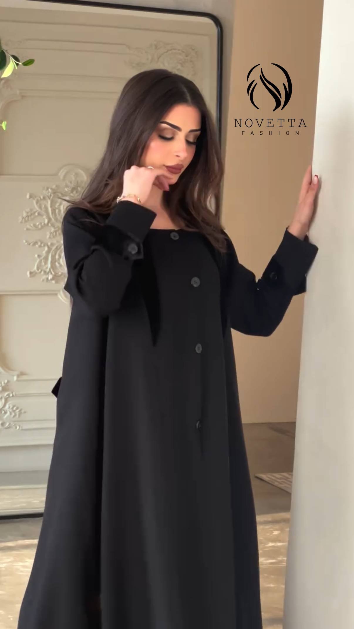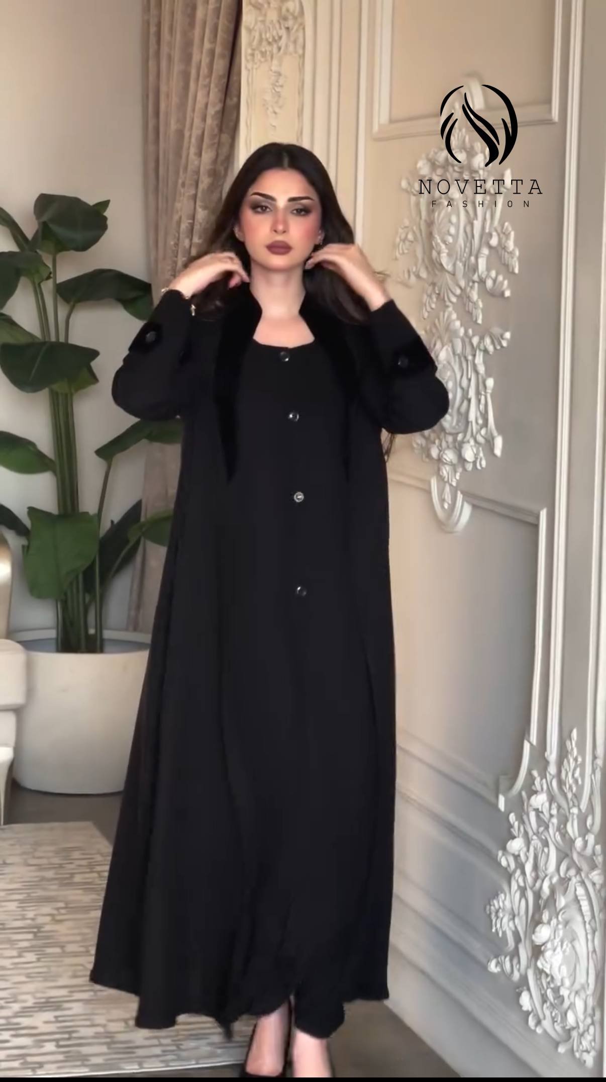 فخامة الأسود بتفاصيل مخملية أنيقة تليق بمواسم الأناقة تصميم بسيط يحمل حضور راقٍ وإحساس خريفي دافئ بخامة بورتريكو كورية تقيلة وناعمة وسواد داكن زالمقاسات وافية وواسعة