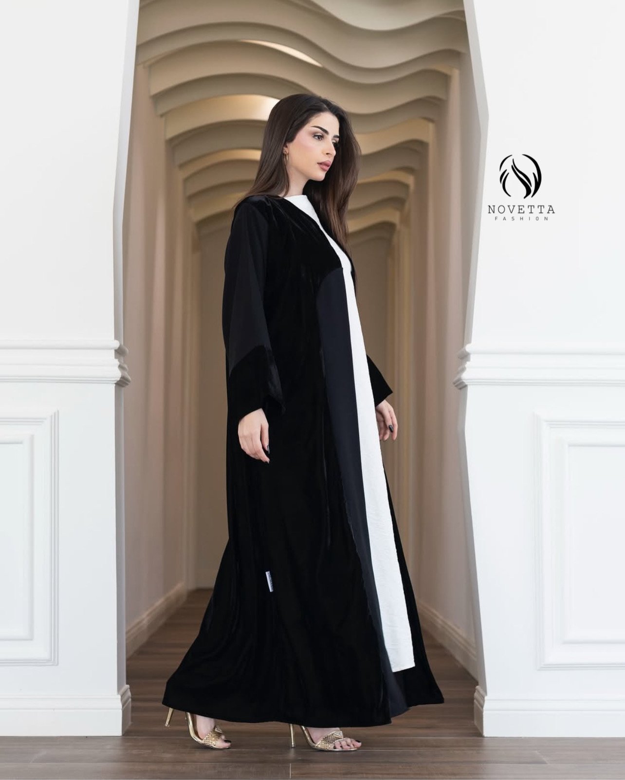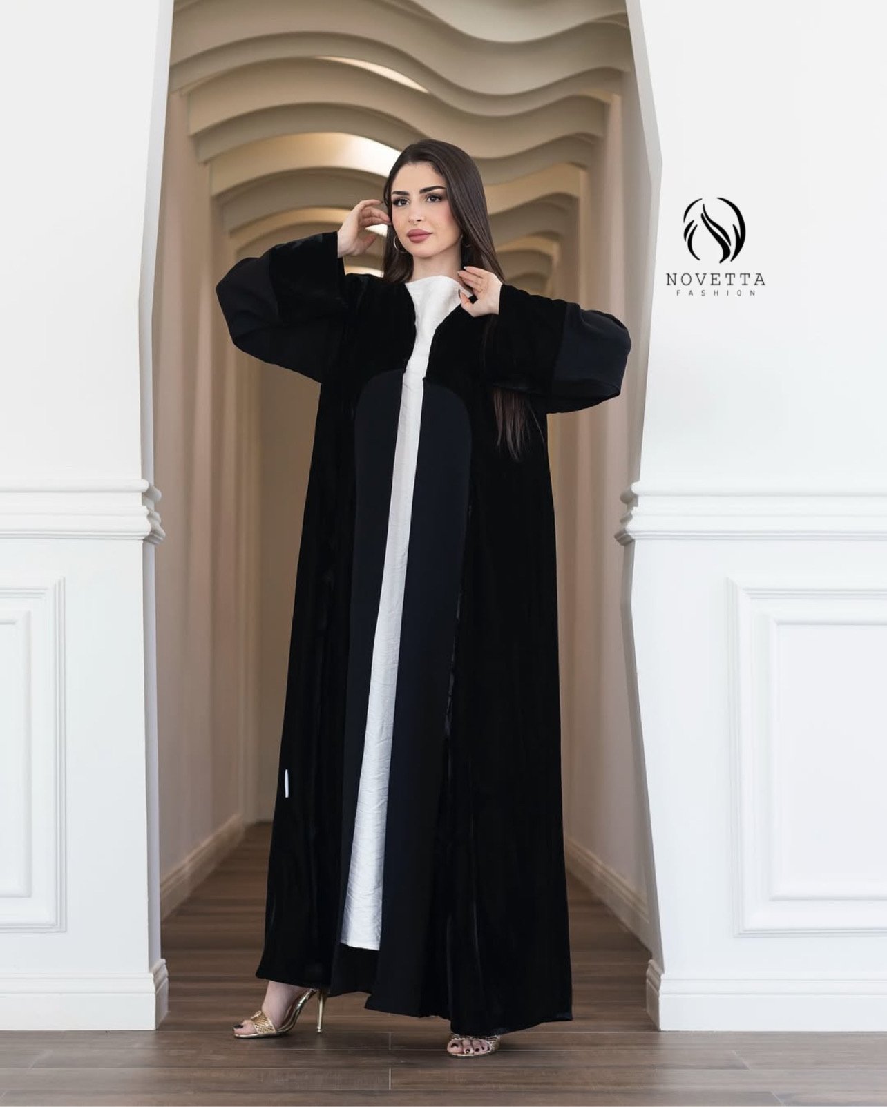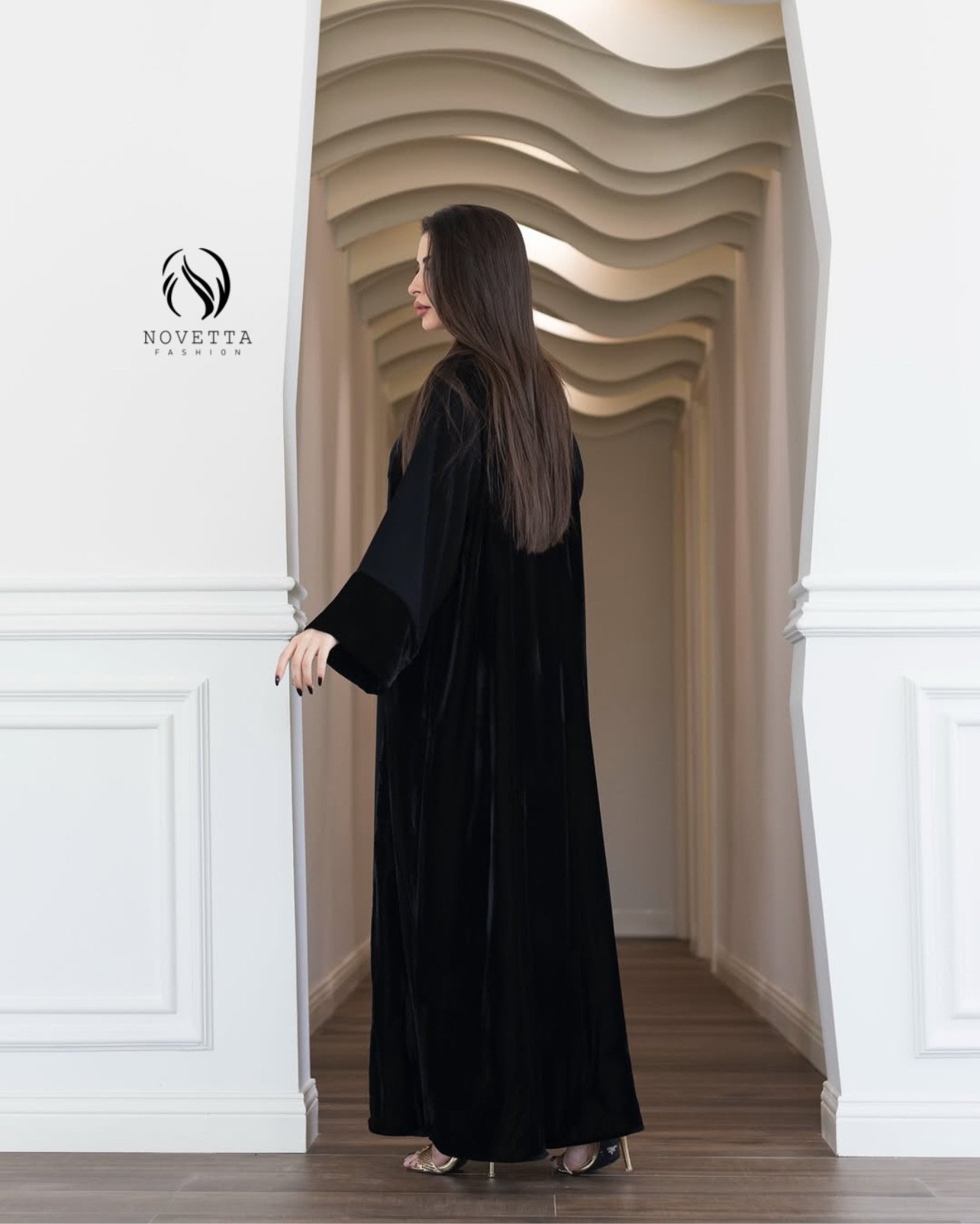 عباية سوداء فاخرة بتصميم عصري يجمع بين نعومة المخمل ، تمنح إطلالة أنيقة وجريئة بلمسة راقية.بخامة كوبا بورتريكو كوري تقيلة وناعمة وسواد داكن مع مخمل سلك والمقاسات وافية واسعة