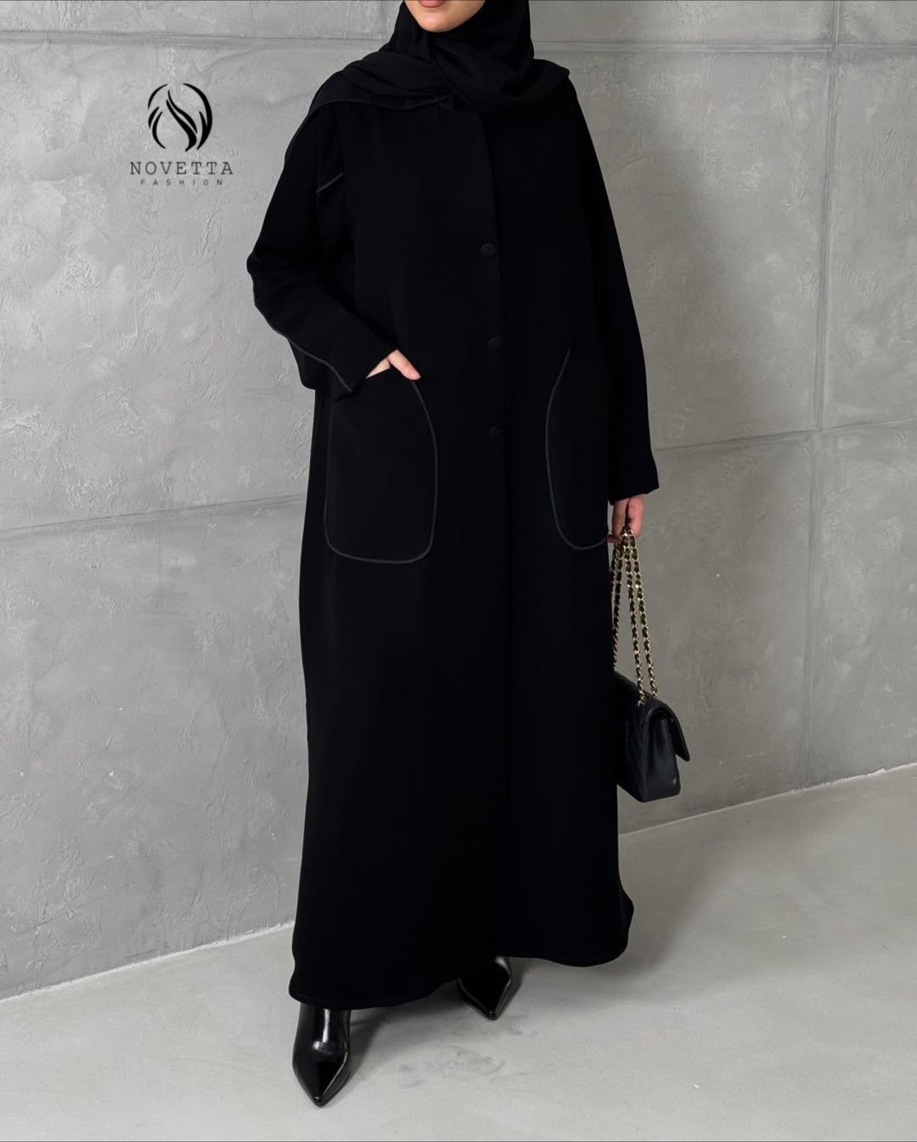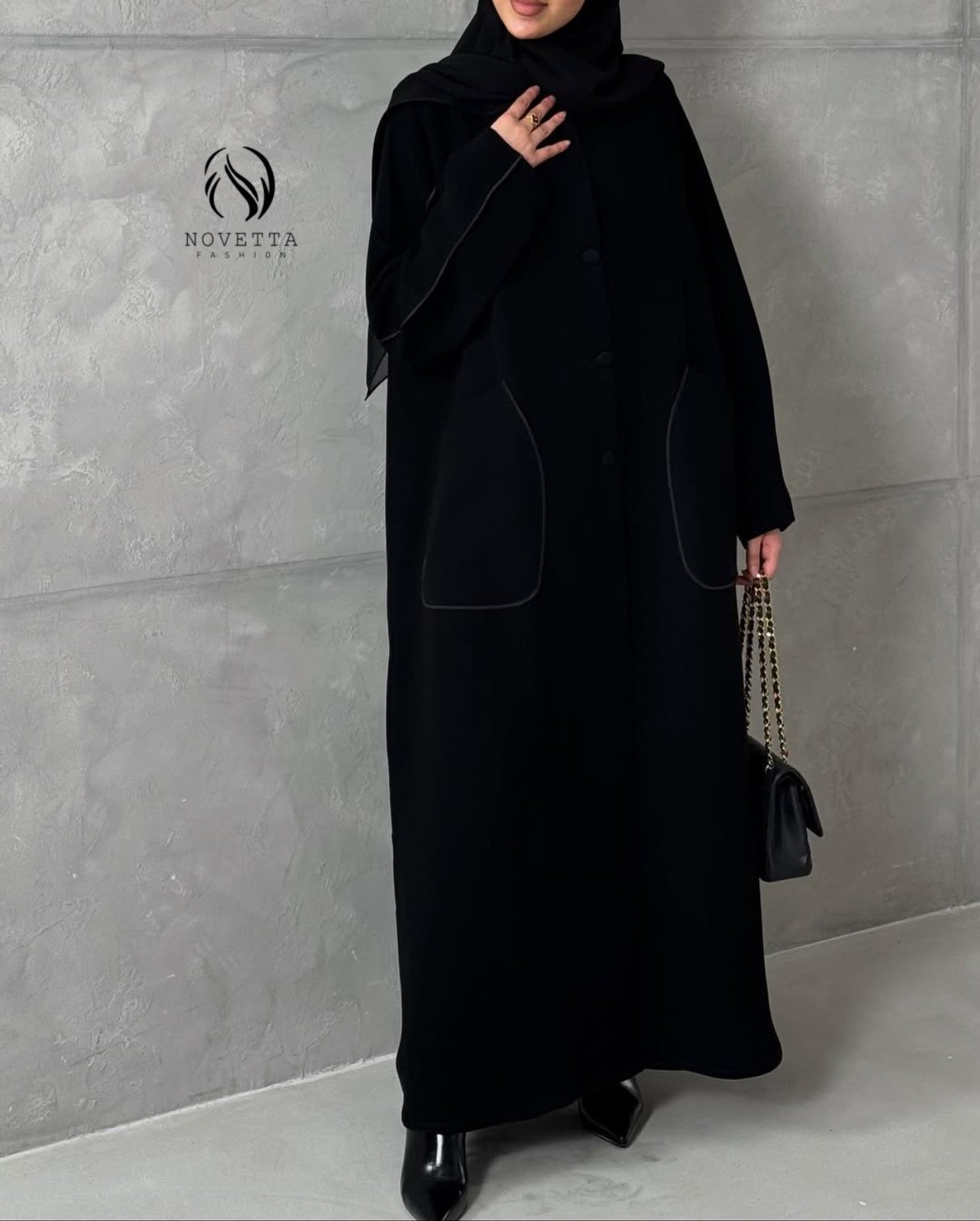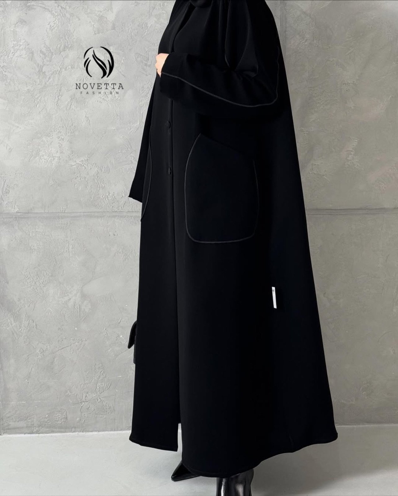 مزودة بأجياب جانبية واسعة صُممت بعناية لتجمع بين العملية والفخامة دون التأثير على الخط العام.تفاصيل خياطة ناعمة تُبرز جودة التنفيذ،مع أزرار أمامية متناغمة تمنح سهولة في الارتداء ولمسة كلاسيكية أنيقة,مناسبة للإطلالات اليومية الراقية كما للمناسبات،وتعكس مفهوم الفخامة الهادئة في أدق تفاصيلها.بخامة باربي اندونيسي مخصص للعباي هدلة وناعمة وسواد داكن.