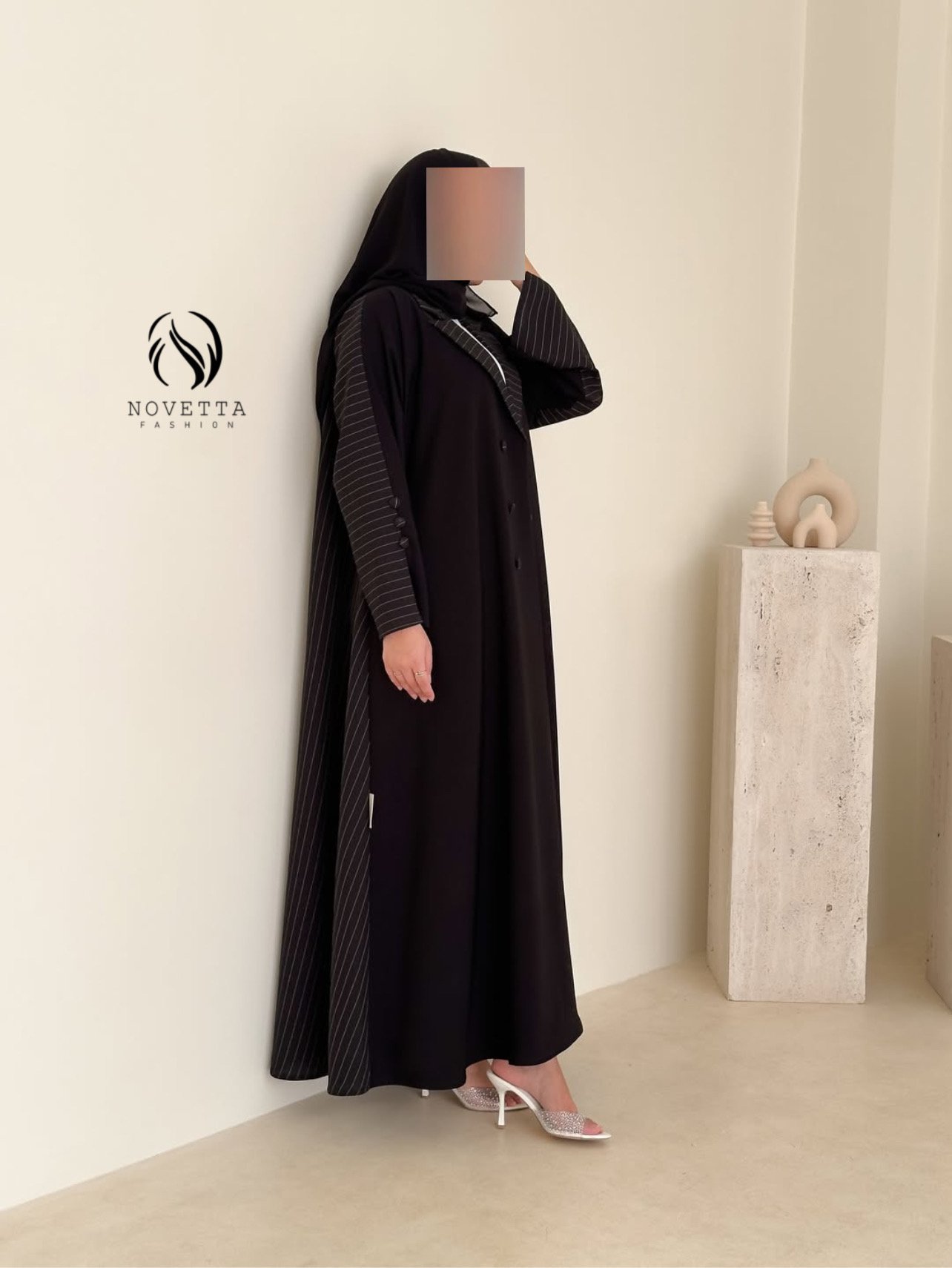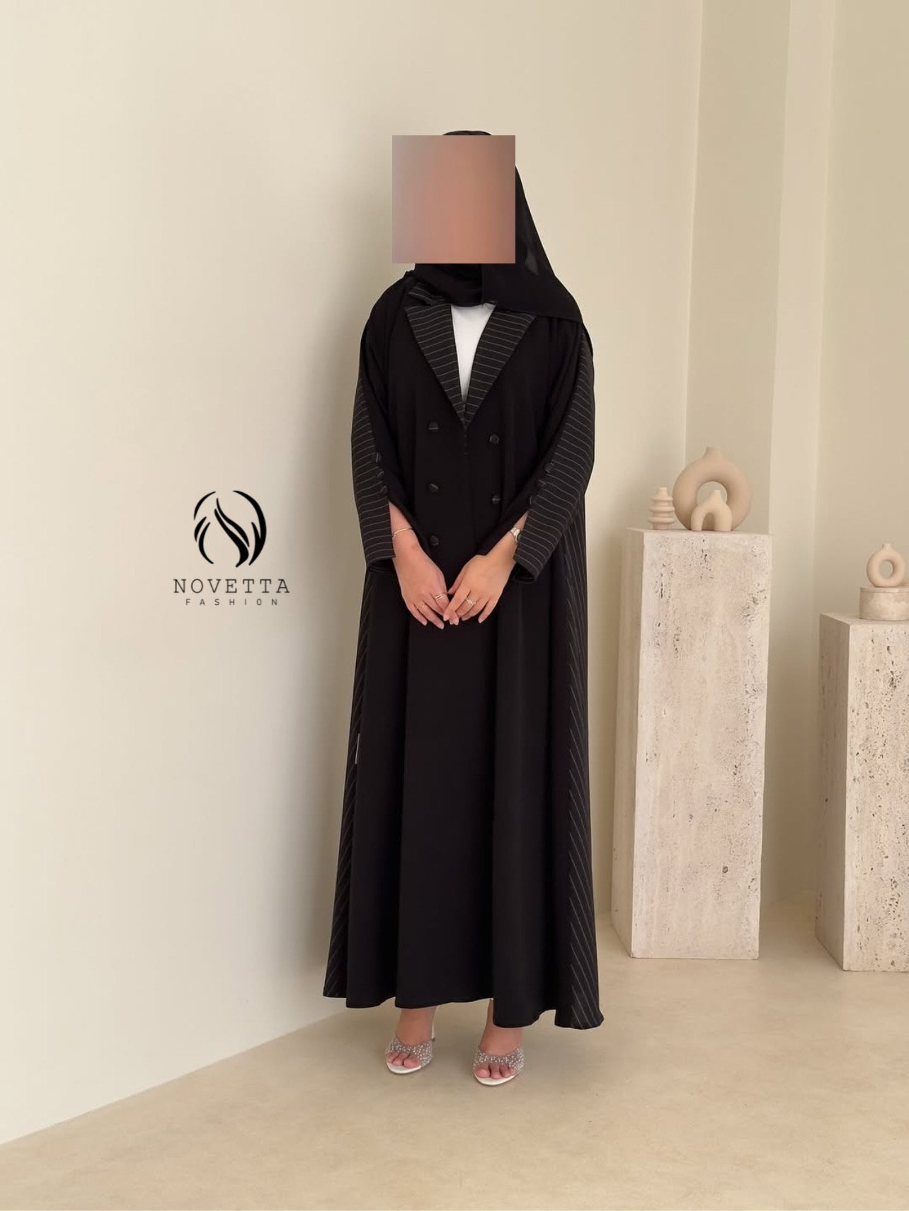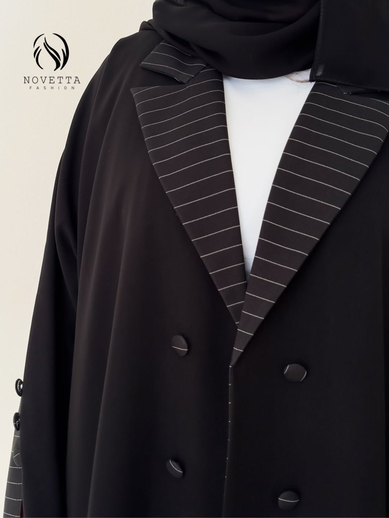 قصّة متقنة توازن بين البساطة والفخامة،لتقدّم قطعة بحضور قوي… وتفاصيل لا يلاحظها إلا أصحاب الذوق الرفيع بخامة كريب اندونيسي هدلة وناعمة وسواد داكن مع خامة مقلمة مخصصة للعباي