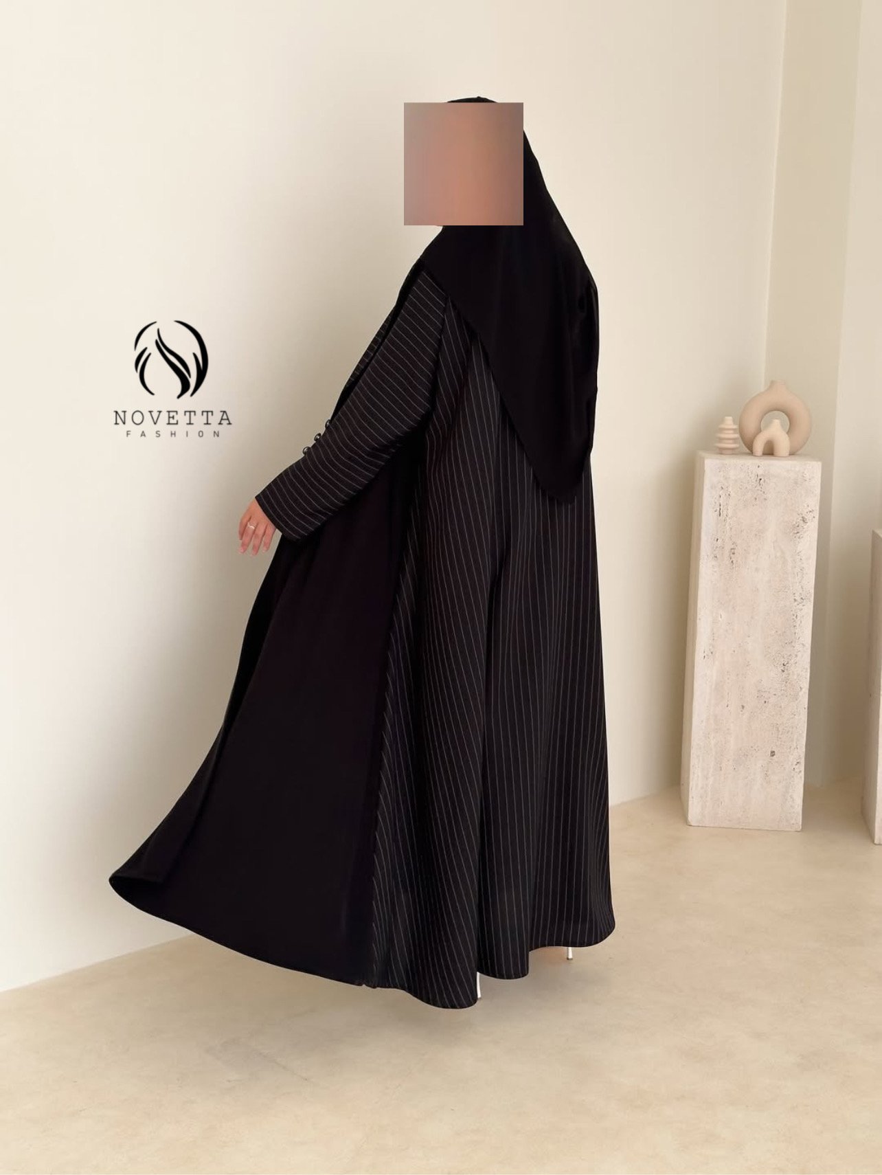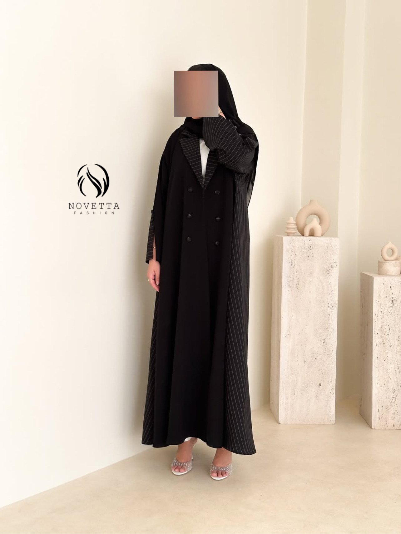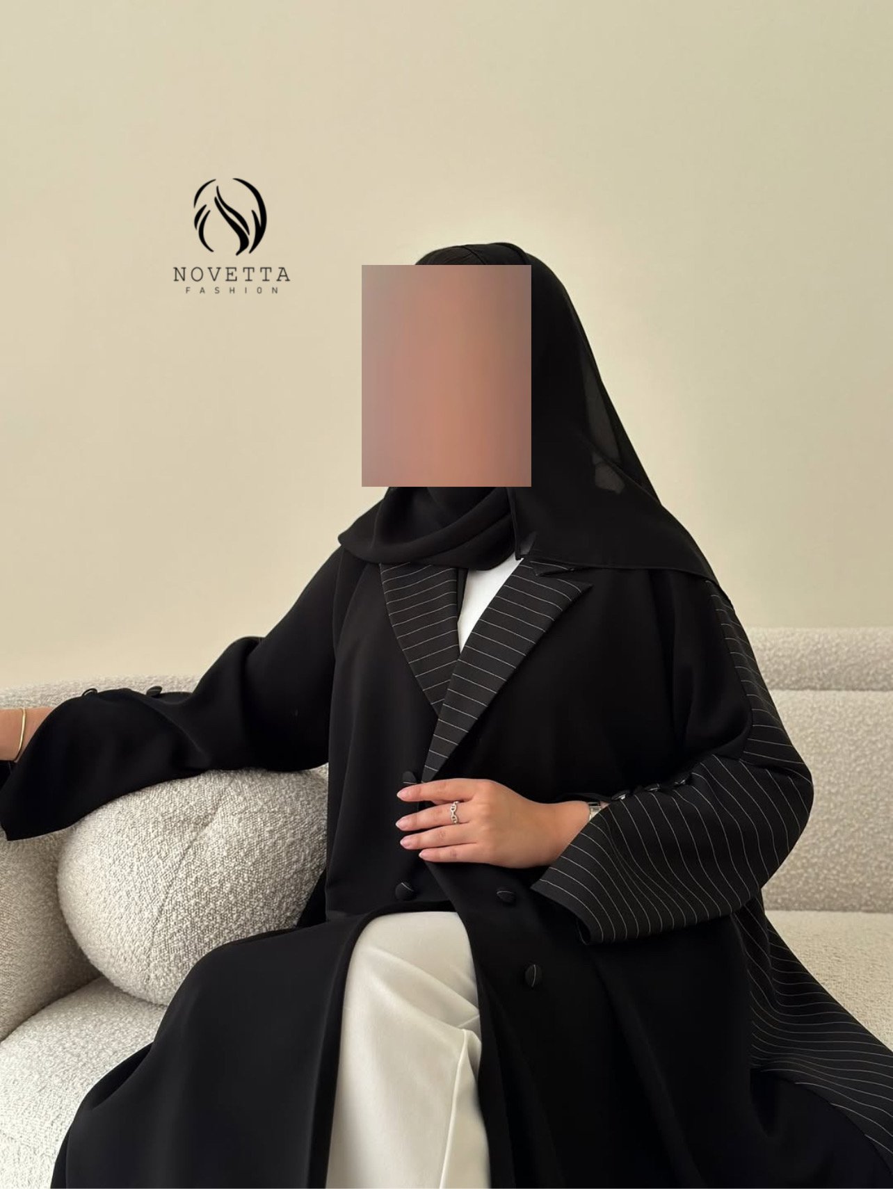 قصّة متقنة توازن بين البساطة والفخامة،لتقدّم قطعة بحضور قوي… وتفاصيل لا يلاحظها إلا أصحاب الذوق الرفيع بخامة كريب اندونيسي هدلة وناعمة وسواد داكن مع خامة مقلمة مخصصة للعباي