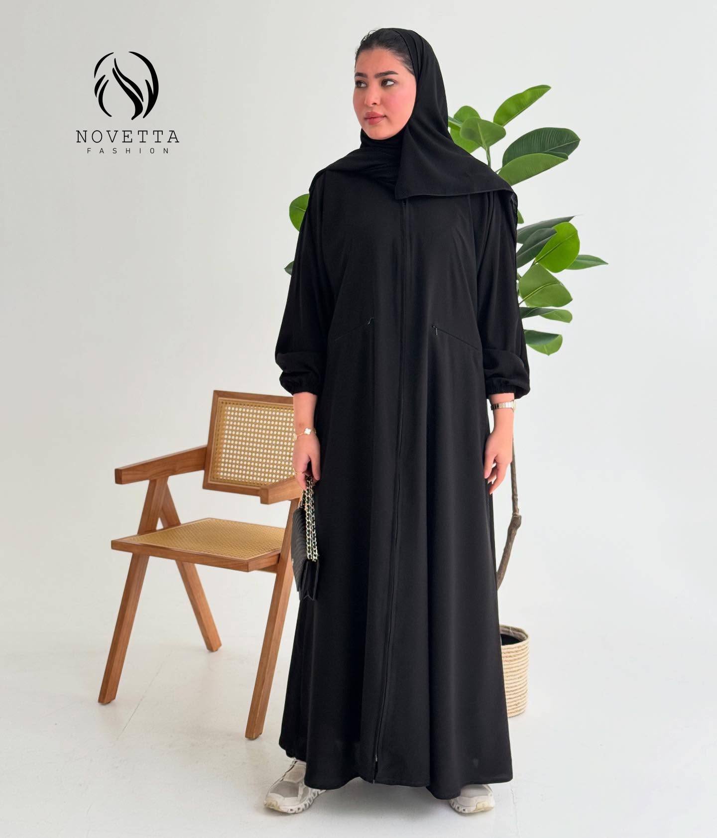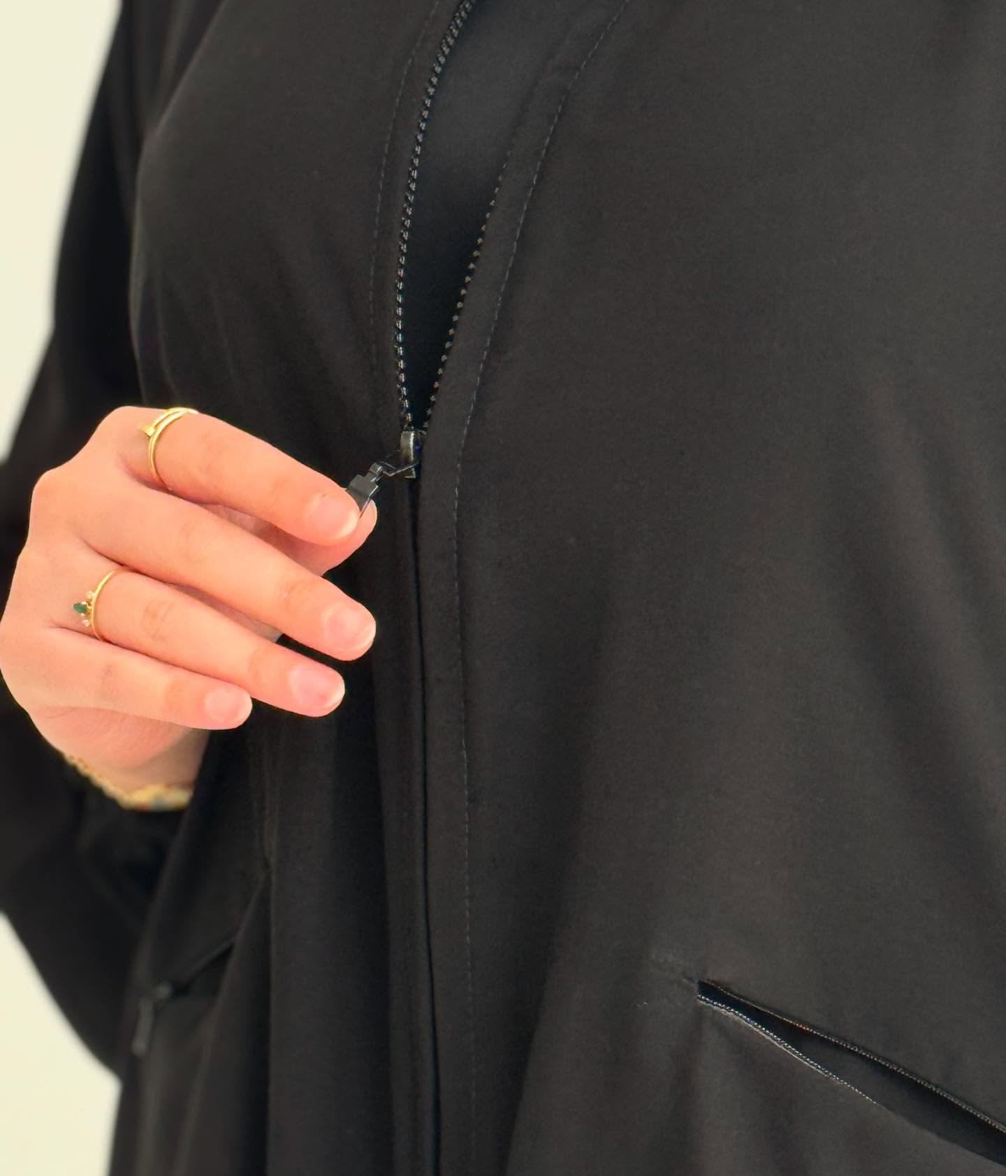 عباية بتصميم سبورت عملي يجمع بين الراحة والأناقة المحتشمة.