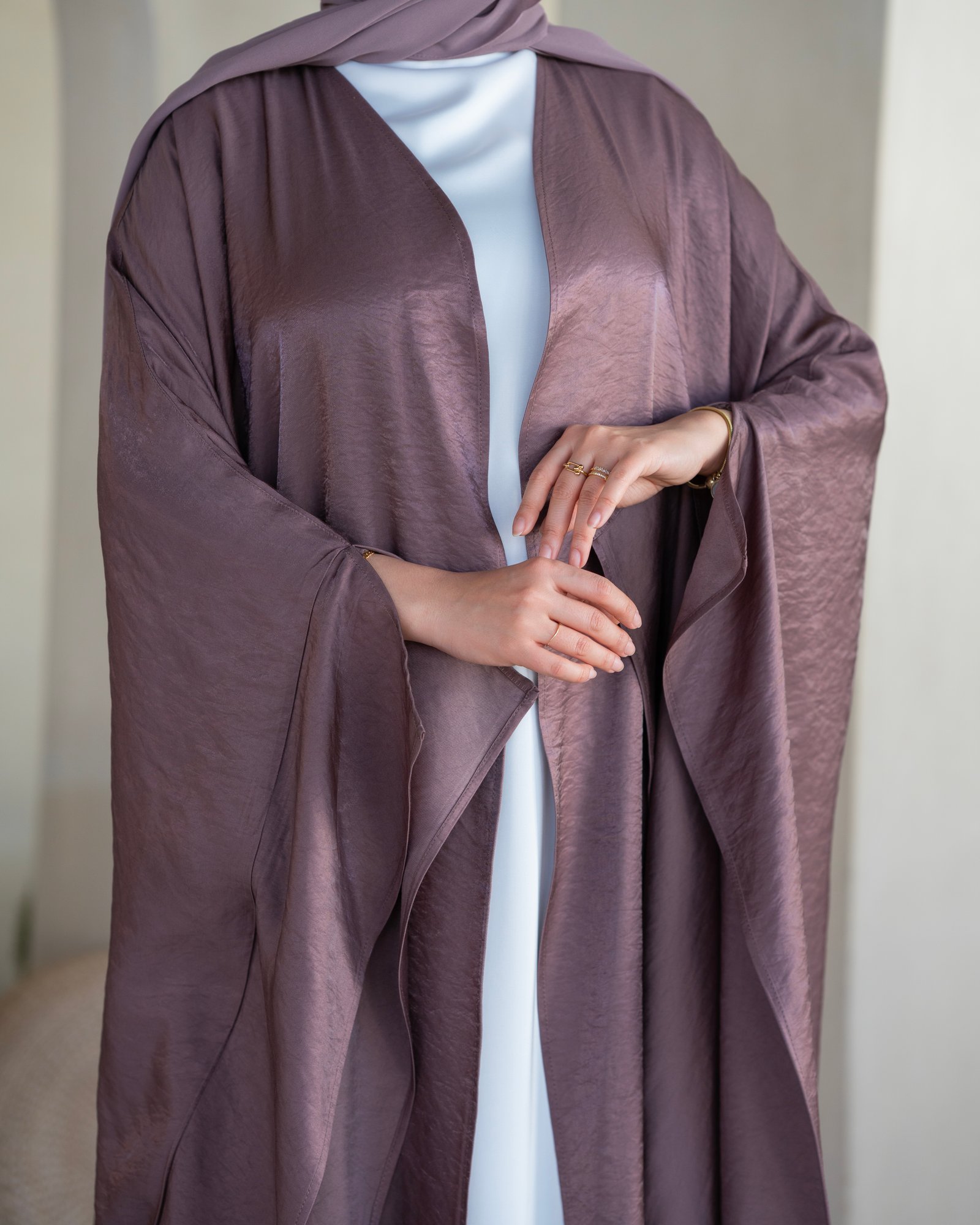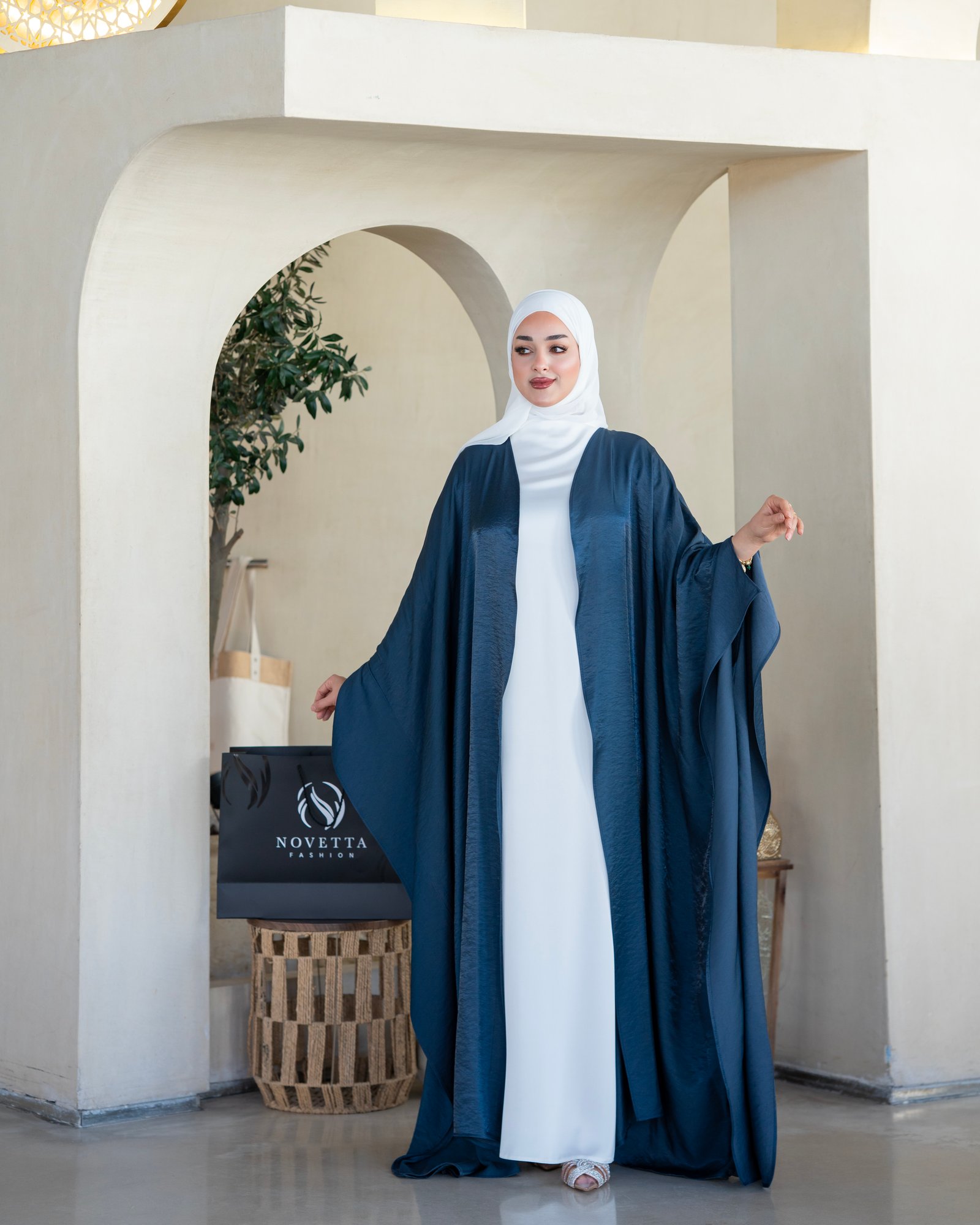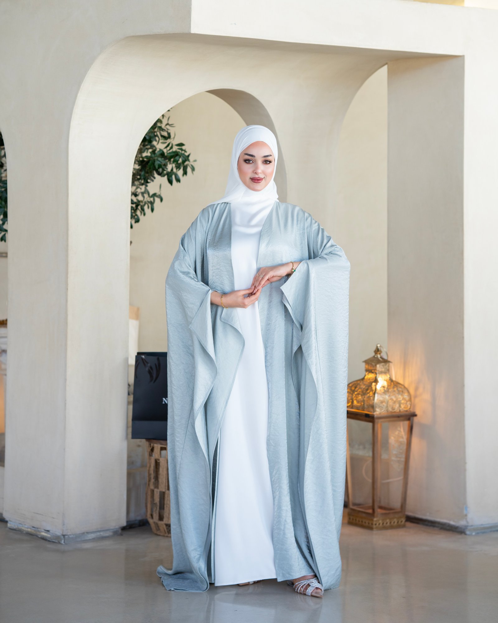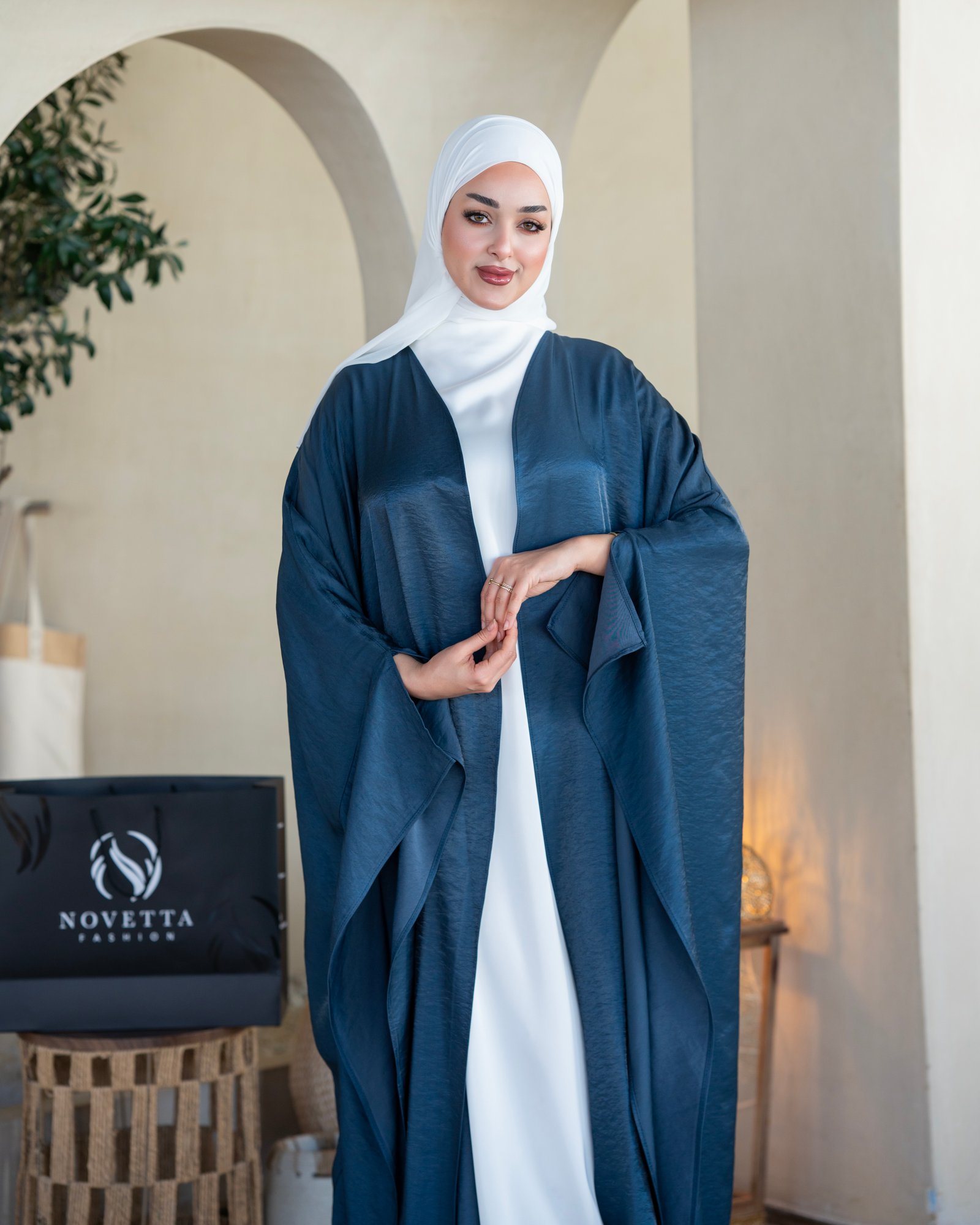 يتميز بقصة واسعة وانسيابية تمنح إطلالة محتشمة وأنيقة، مع خامة ناعمة بلمعة خفيفة تضيف لمسة فاخرة للمظهر.