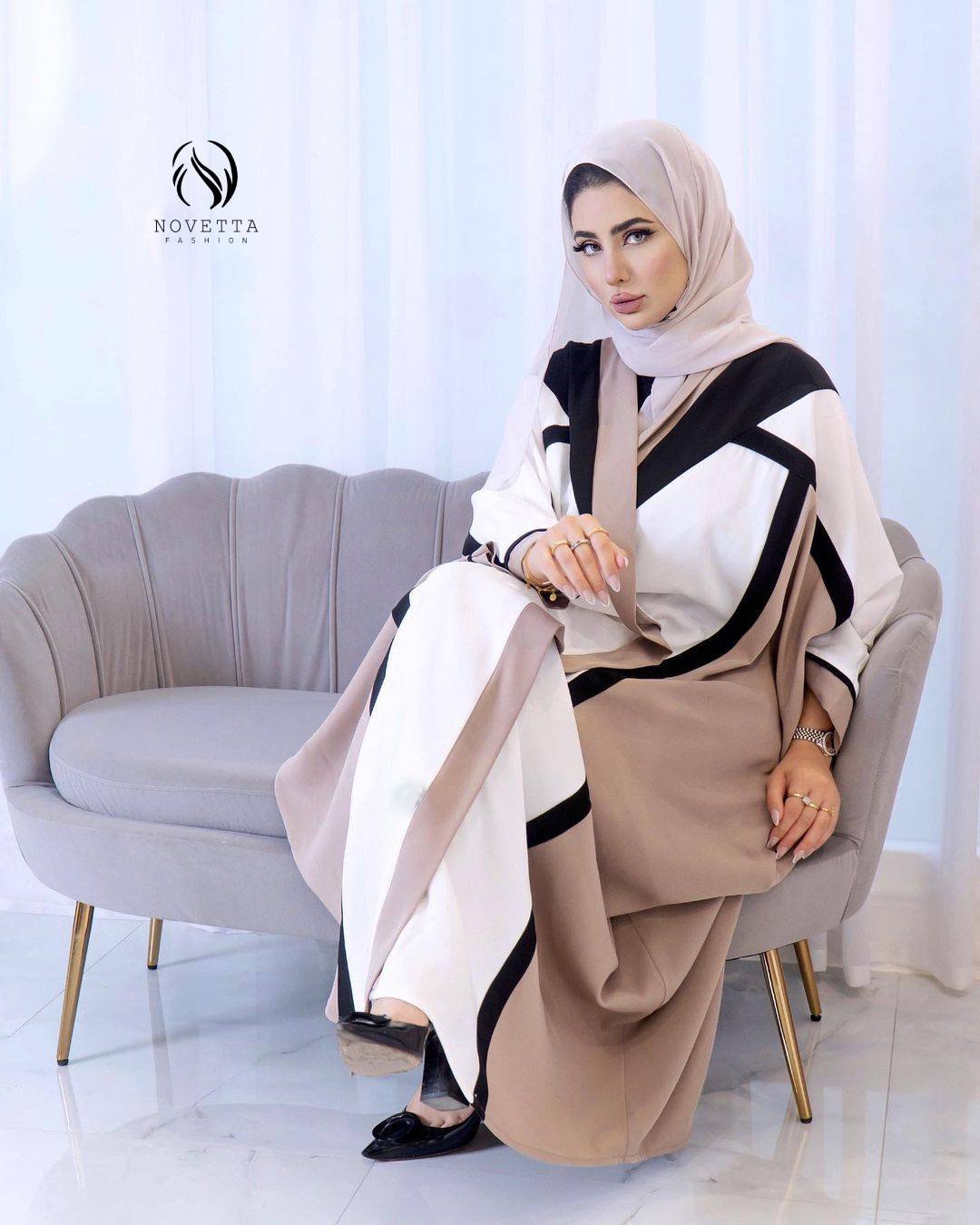 بشت بتدرجات الاوف وايت والبيج يتخلله خط أسود راقٍ… تصميم يعكس هدوء الأناقة وهيبة الحضور بخامة برادا هدلة وناعمة مع كوبا تقيلة وسواد داكن