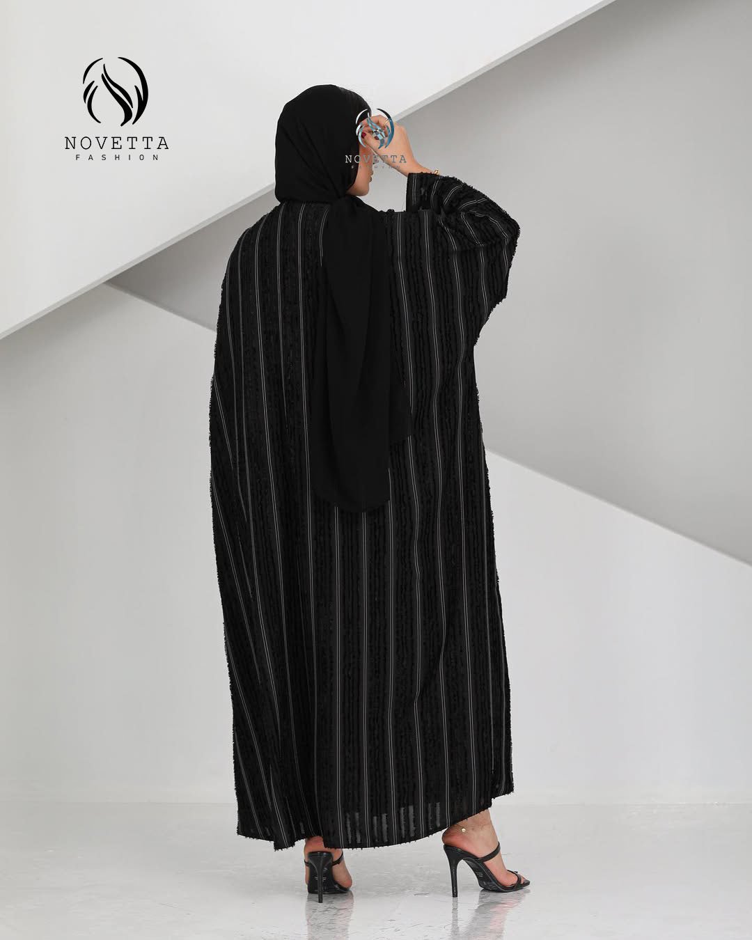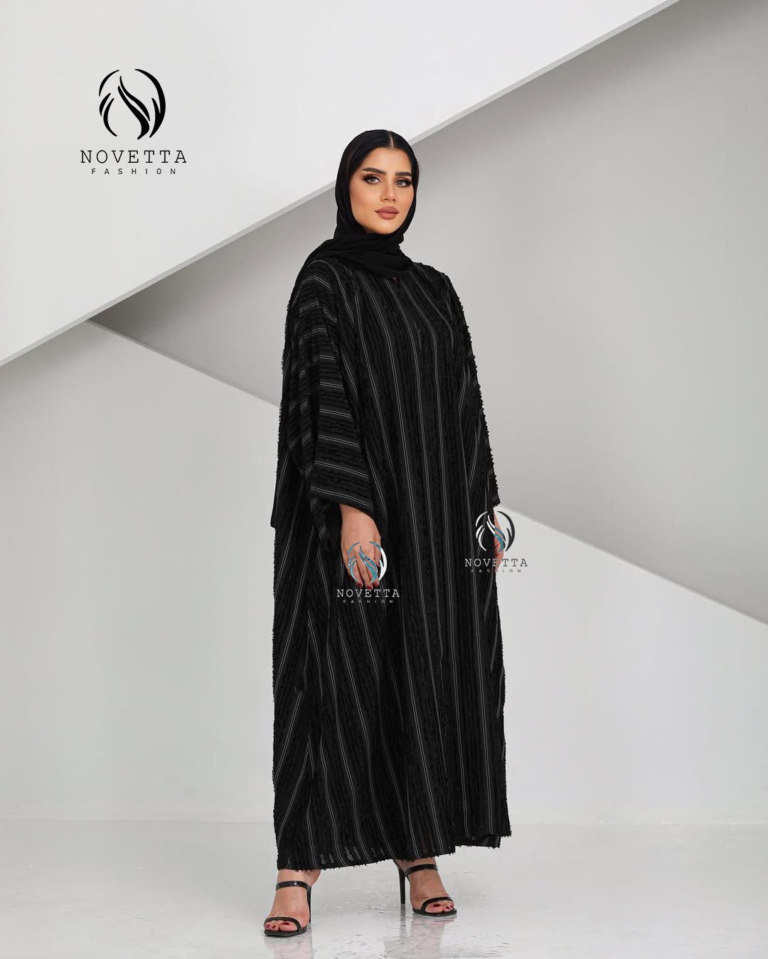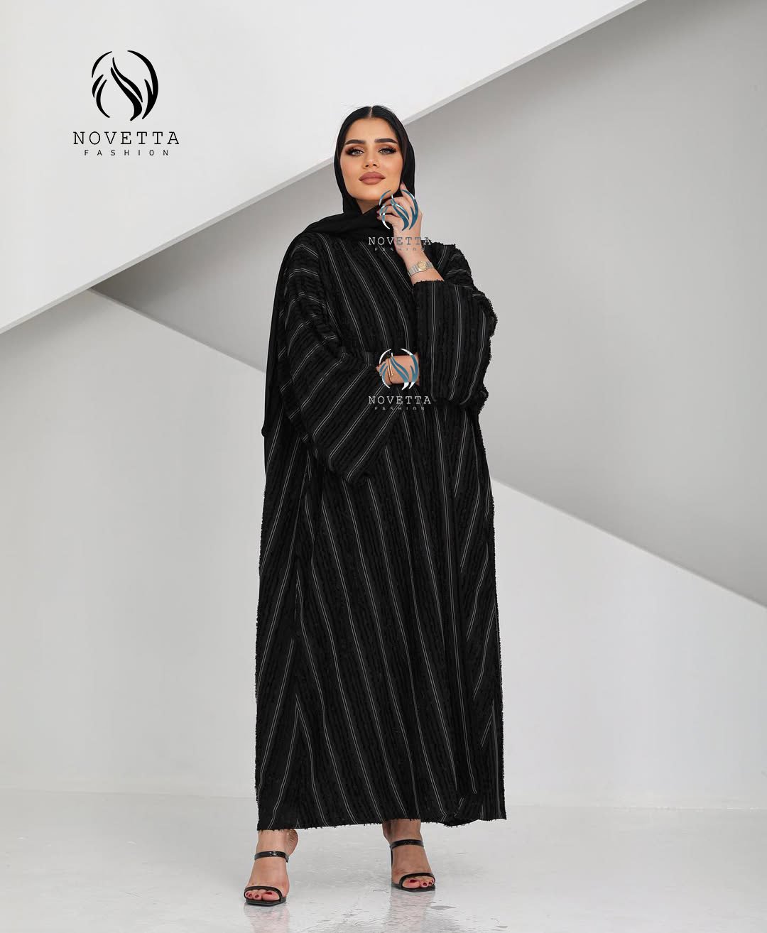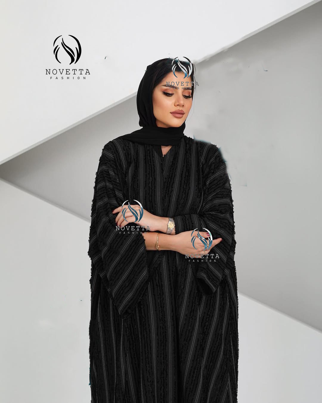 عباية فخمة بخطوط ناعمة وطابع مميز، تمنحك حضور أنيق وإطلالة ناعمة بلمسة كلاسيكية عصرية.بخامة عباي ديزاين منتش ودرزات