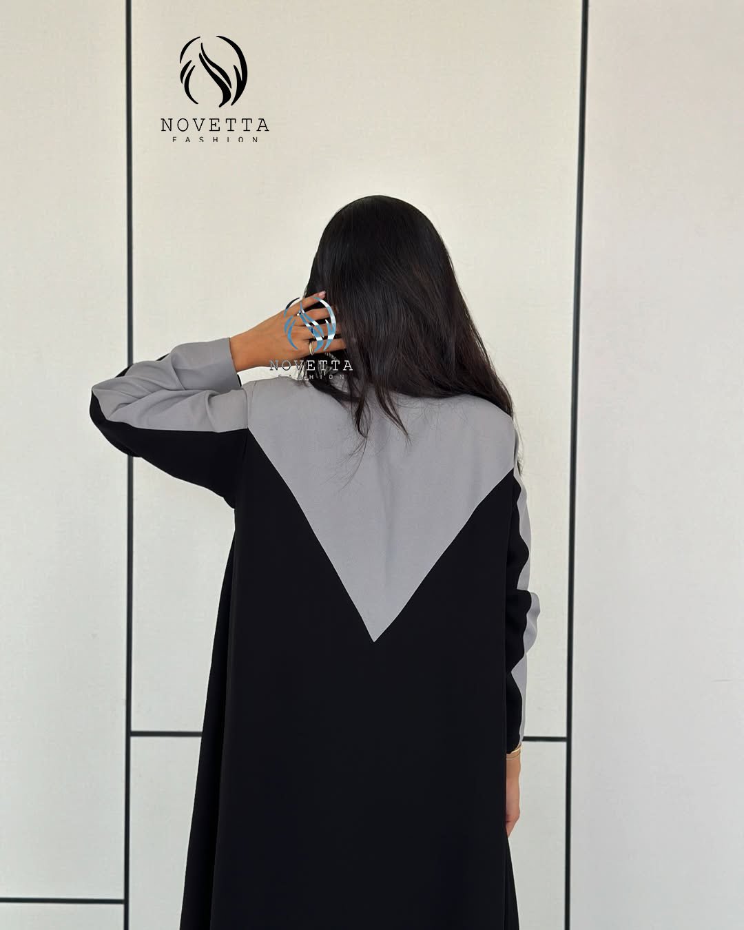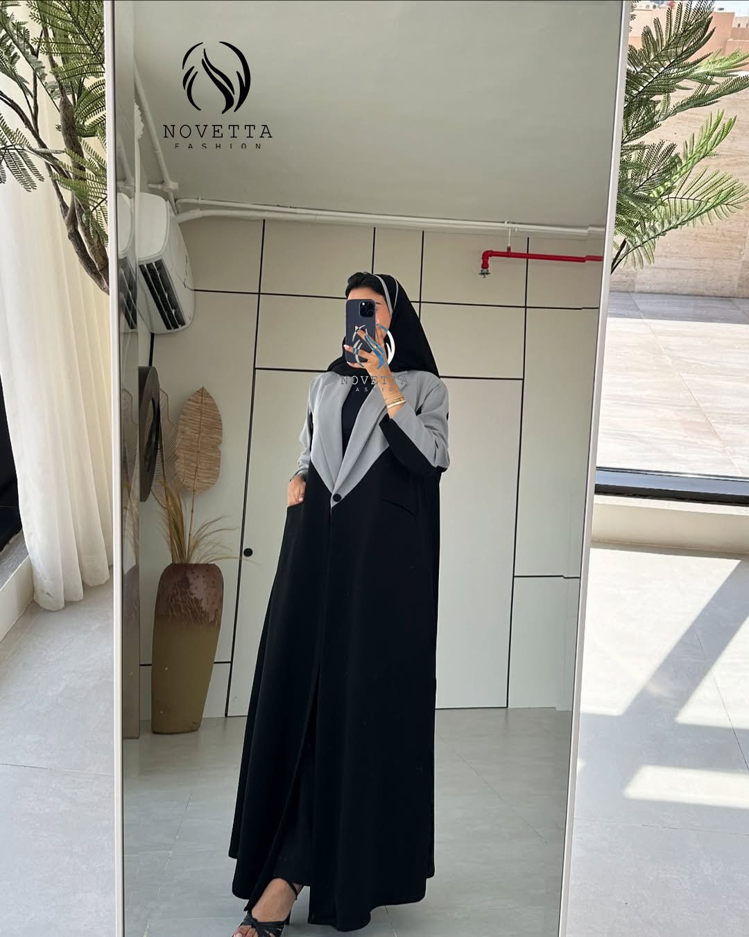 عباية فاخرة بتصميم أنيق وانسيابي، بأكمام واسعة مزينة بربطة جانبية وأزرار ناعمة تضيف لمسة أنثوية راقية.بخامة فكتوريا كوري والمقاسات وافية وواسعة
