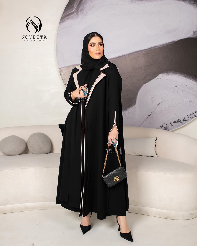 عباية سوداء فاخرة بتفاصيل بيج ناعمة على الأطراف تضيف لمسة أناقة مميزة. القَصّة انسيابية مع لمسة عصرية، مناسبة للمرأة الراقية التي تجمع بين البساطة والجاذبية. قطعة مثالية للإطلالة الرسمية والكاجوال، تعكس ذوقك الرفيع بكل أناقة.بخامة حبر الفرسان والمقاسات وافية وواسعة