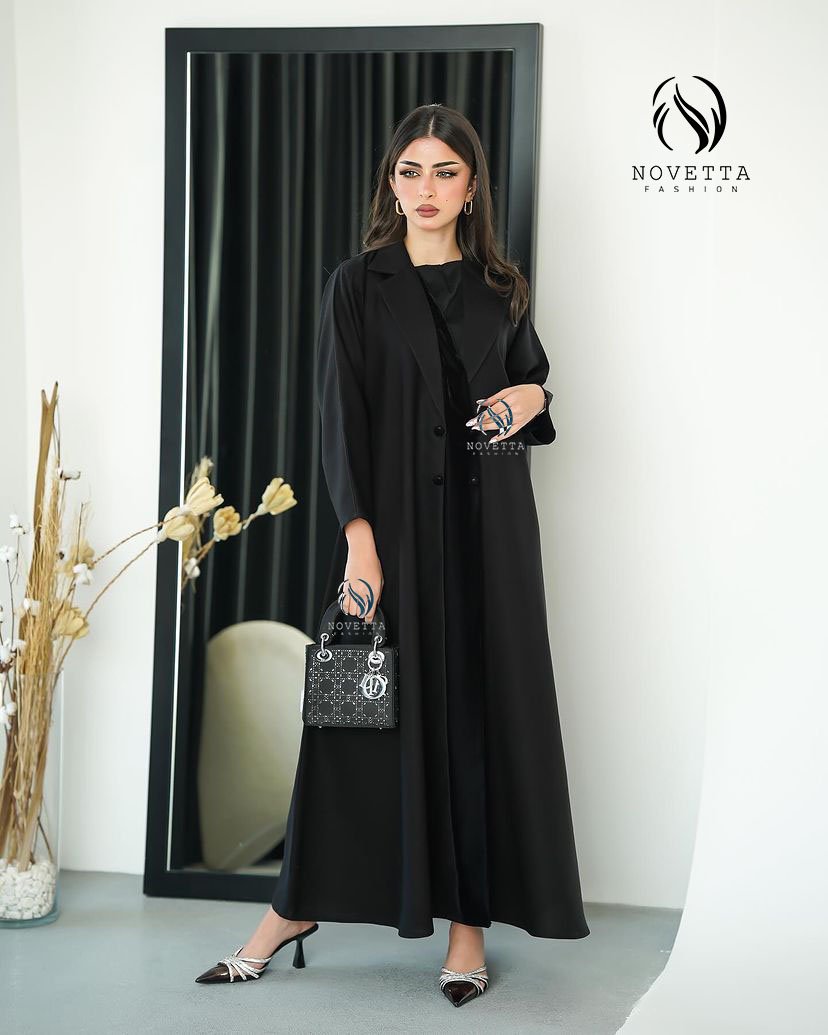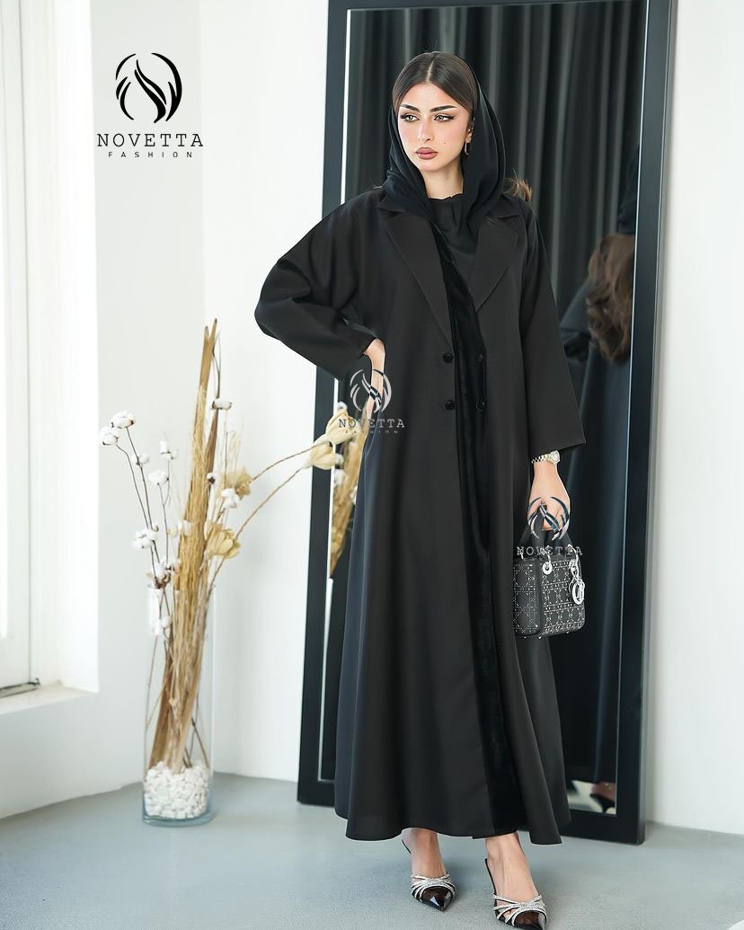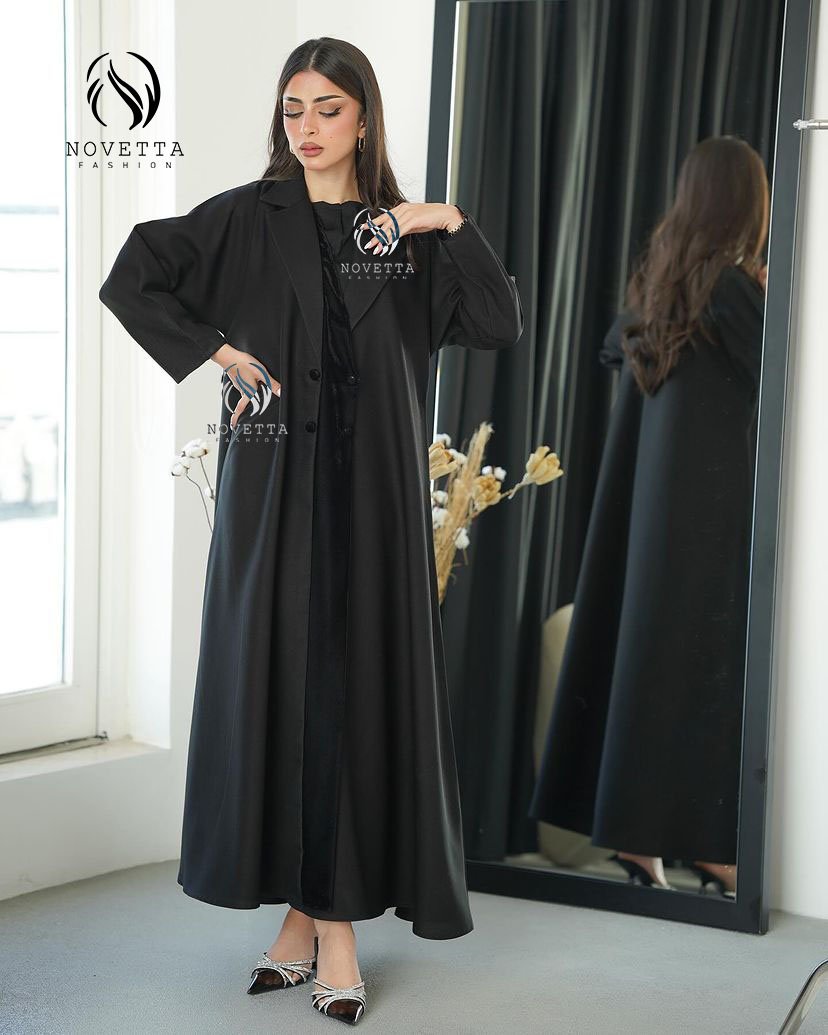 عباية سوداء بتصميم كلاسيكي مع ياقة جاكيت عصرية وقصة انسيابية، بلمسة قماش ساتان ناعم يضيف فخامة هادئة تناسب إطلالاتك الرسمية واليومية.بخامة فكتوريا كورية والمقاسات وافية وواسعة