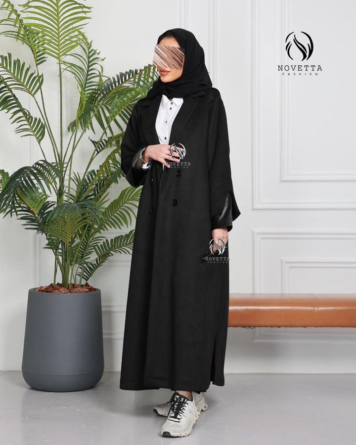 عباية سوداء بتصميم أنيق مع تفاصيل جلدية على الأكمام، تضيف لمسة جريئة تناسب الإطلالة الكلاسيكية والعصرية.بخامة شامواه اسود مع كمام جلد والمقاسات وافية وواسعة