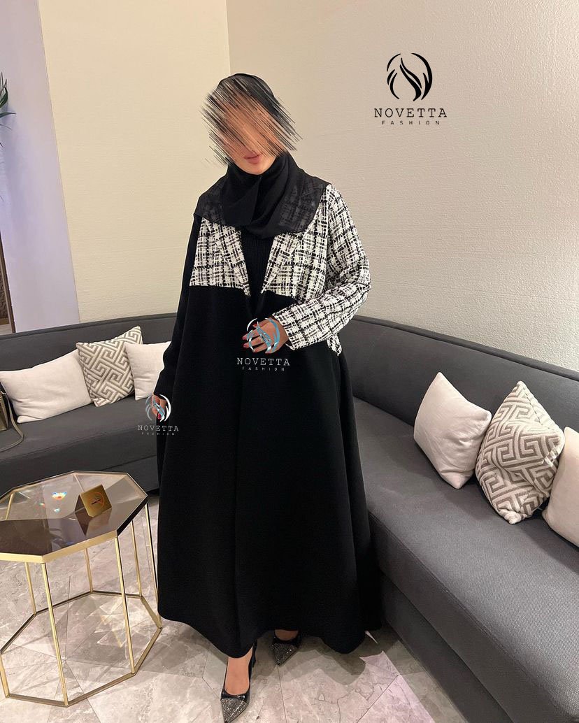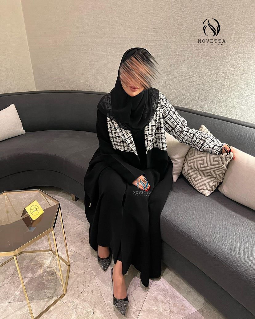 عباية بتصميم راقي بدمج خامة التويد الكلاسيكية مع القماش الأسود السادة، لمسة عصرية تجمع بين الأناقة والعملية.بخامة بوكليه كروهات + شمواه اسود والمقاسات وافية وواسعة