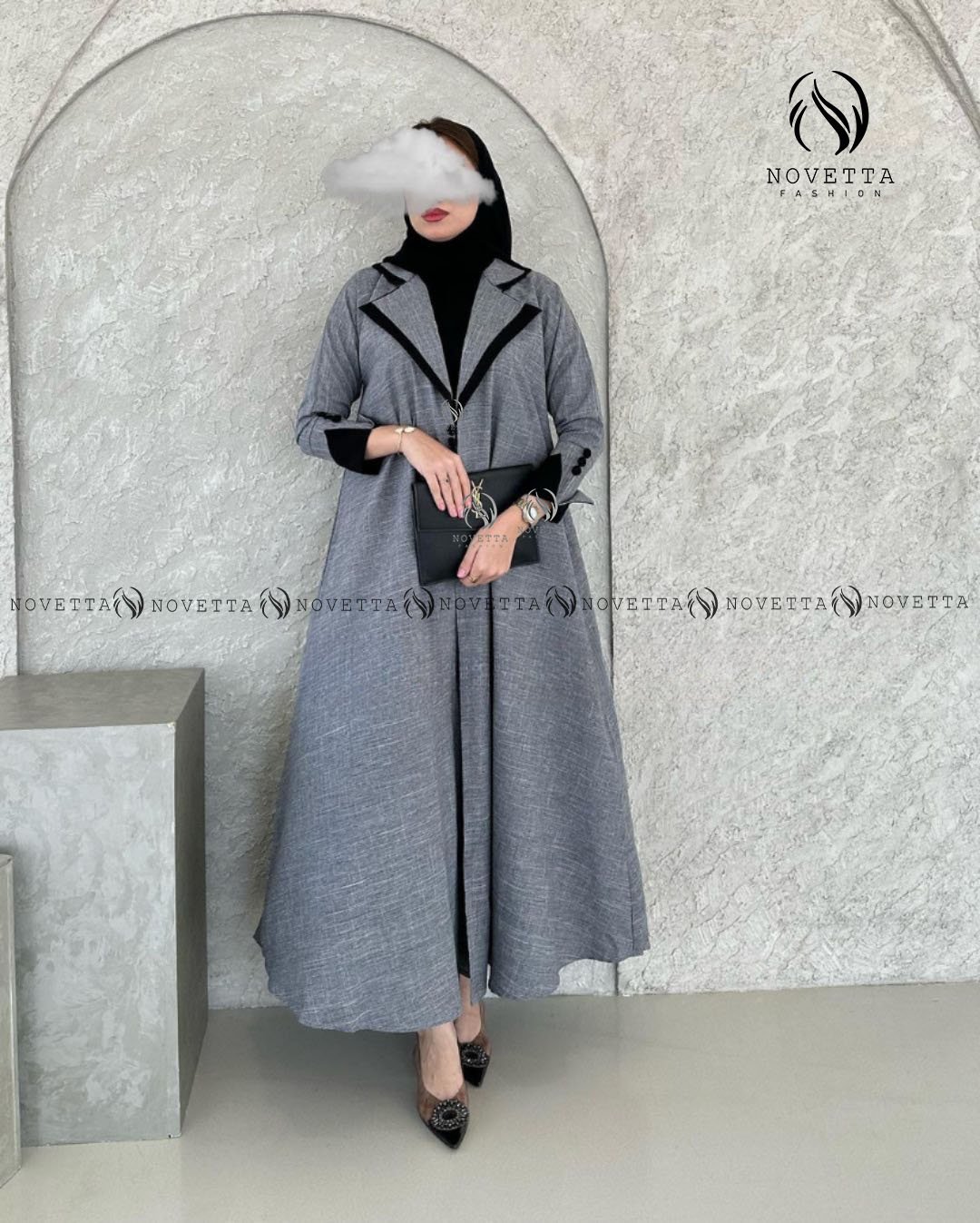 عباية بليزرية بتصميم فاخر يجمع بين الأناقة الكلاسيكية. خامة رمادية راقية بتفاصيل سوداء على الياقة والأكمام تمنح تباين فخم ولمسة احترافية تعكس أسلوب المرأة الواثقة. بخامةملنج مع مخمل اسود داكن ومبطن, المقاسات وافية واسعة