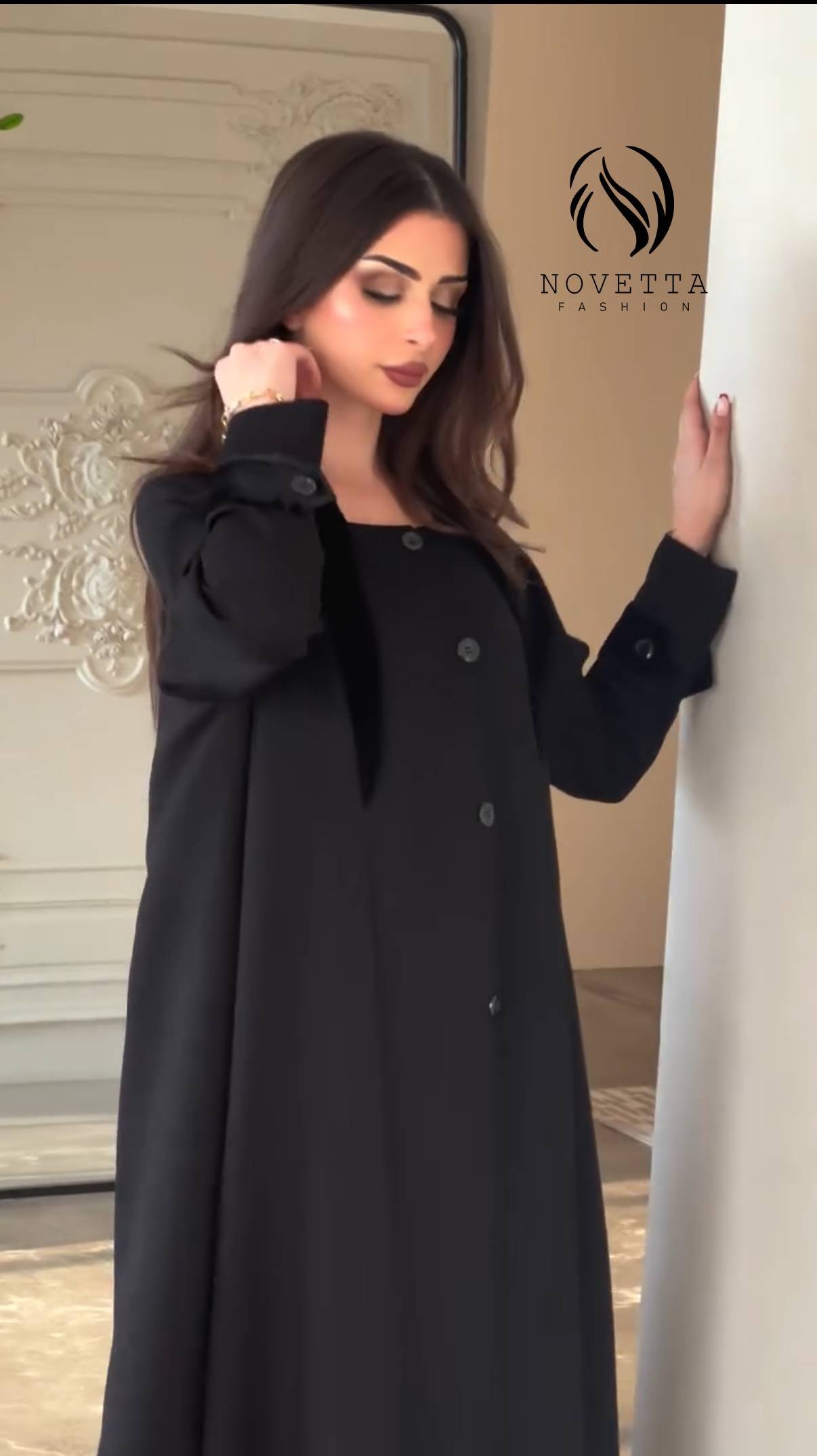 فخامة الأسود بتفاصيل مخملية أنيقة تليق بمواسم الأناقة تصميم بسيط يحمل حضور راقٍ وإحساس خريفي دافئ بخامة بورتريكو كورية تقيلة وناعمة وسواد داكن زالمقاسات وافية وواسعة