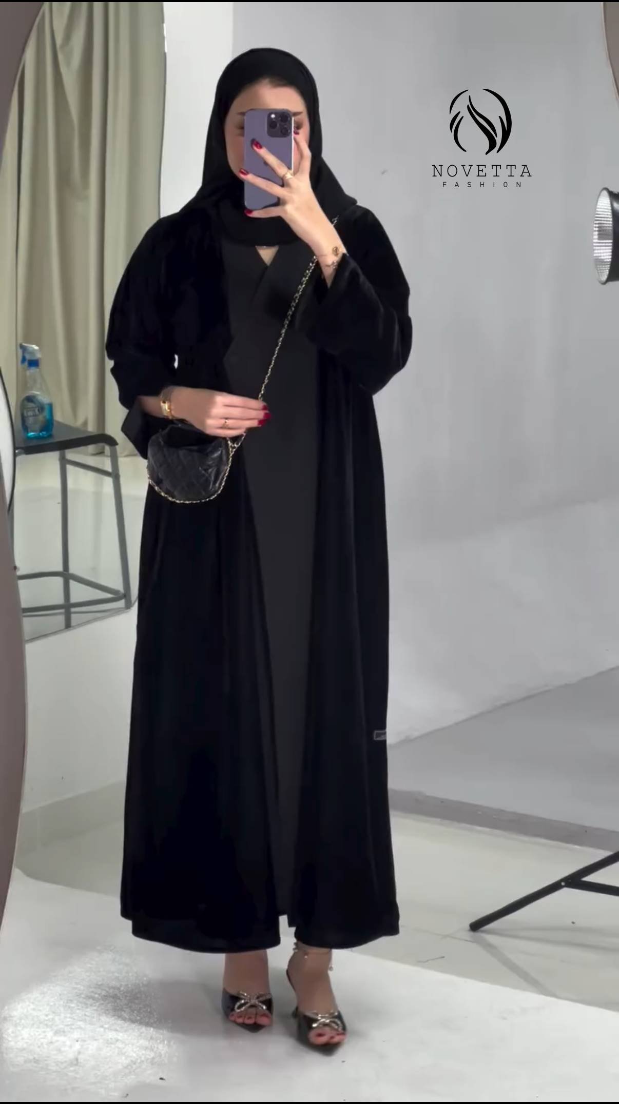 عباية مخمل فاخرة بتصميم ناعم يجمع بين البساطة والفخامة، تمنحك دفء وأناقة خريفية لا تُقاوم.بخامة مخمل ليكرا وسواد داكن مع بورتريكو تقيلة والمقاسات وافية وواسعة