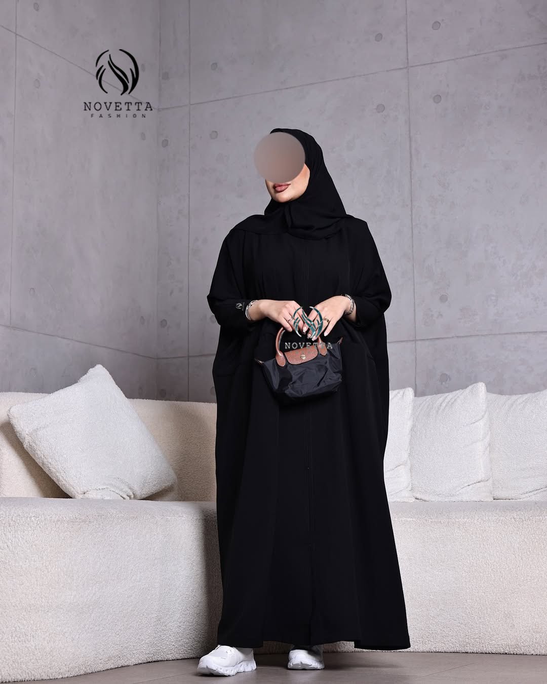 قماش فاخر بانسدال سلس، ينساب مع حركتك بثقة، ليمنحك إطلالة تجمع بين القوة والنعومة في آنٍ واحد. بخامة كريب كوري اسود داكن هدلة وناعمة