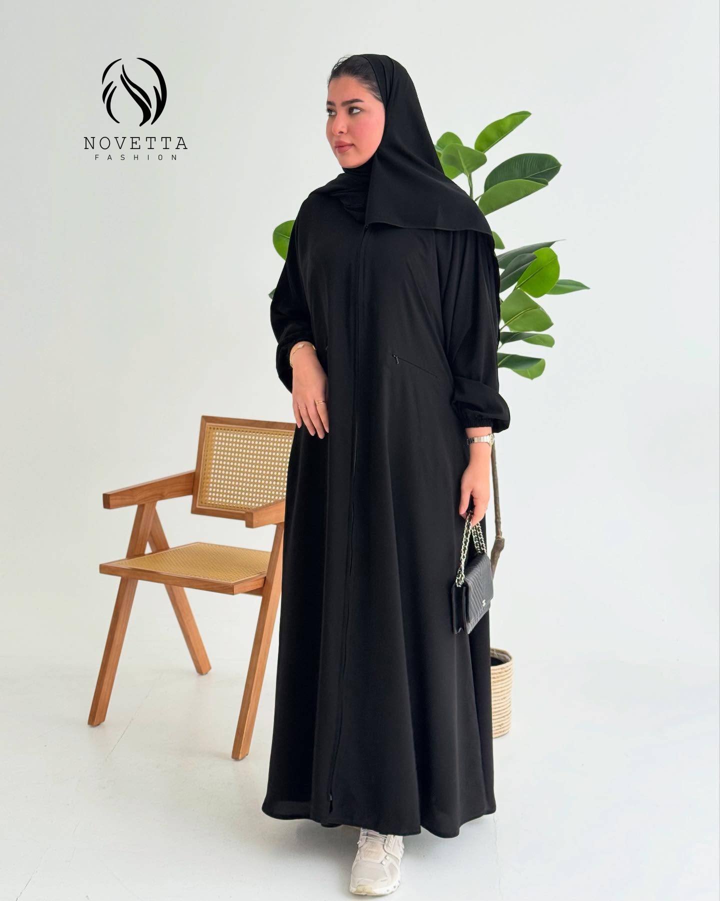 عباية بتصميم سبورت عملي يجمع بين الراحة والأناقة المحتشمة.