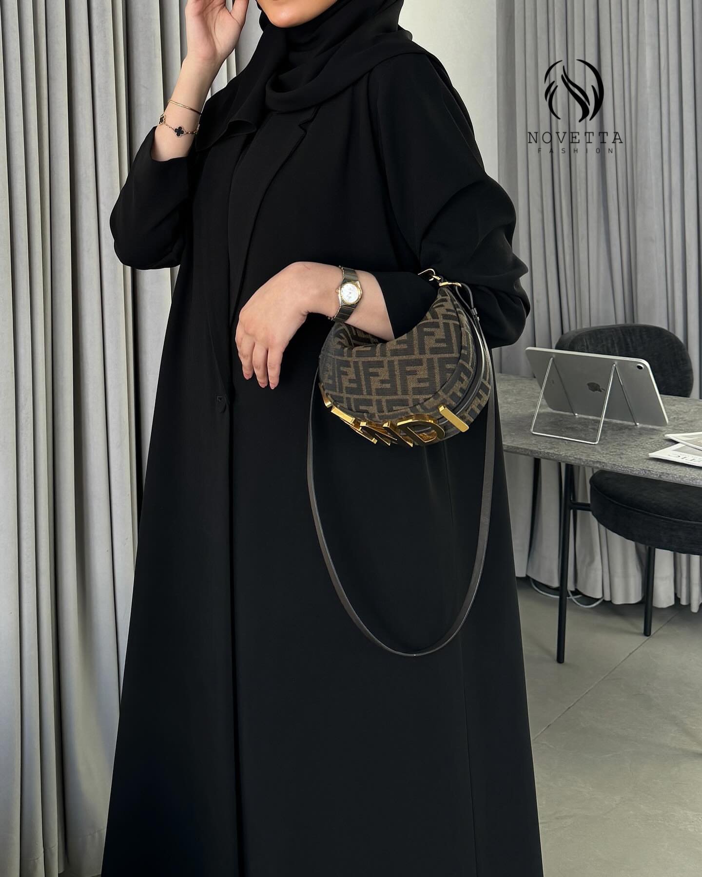 لمسة من الرقي الخالص… تصميم فاخر بقصة كلاسيكية أنيقة تمنحك إطلالة راقية تعبر عن الذوق الرفيع والأناقة الهادئة بخامة فكتوريا كورية تقيلة وهدلة وناعمة وسواد داكن