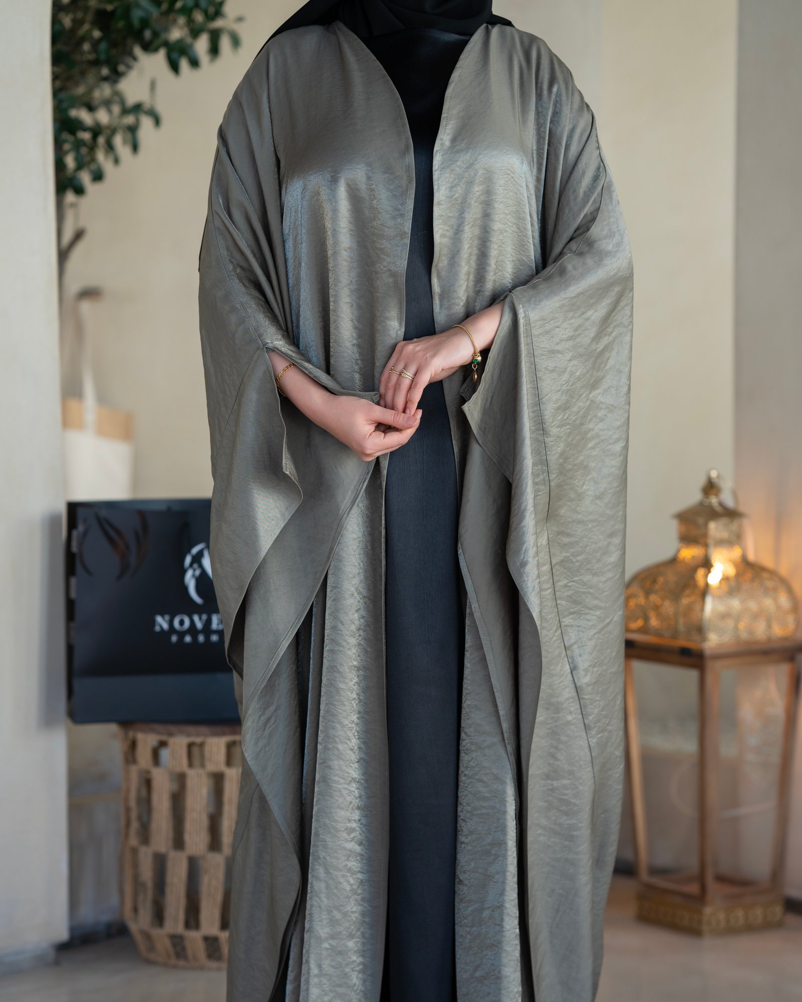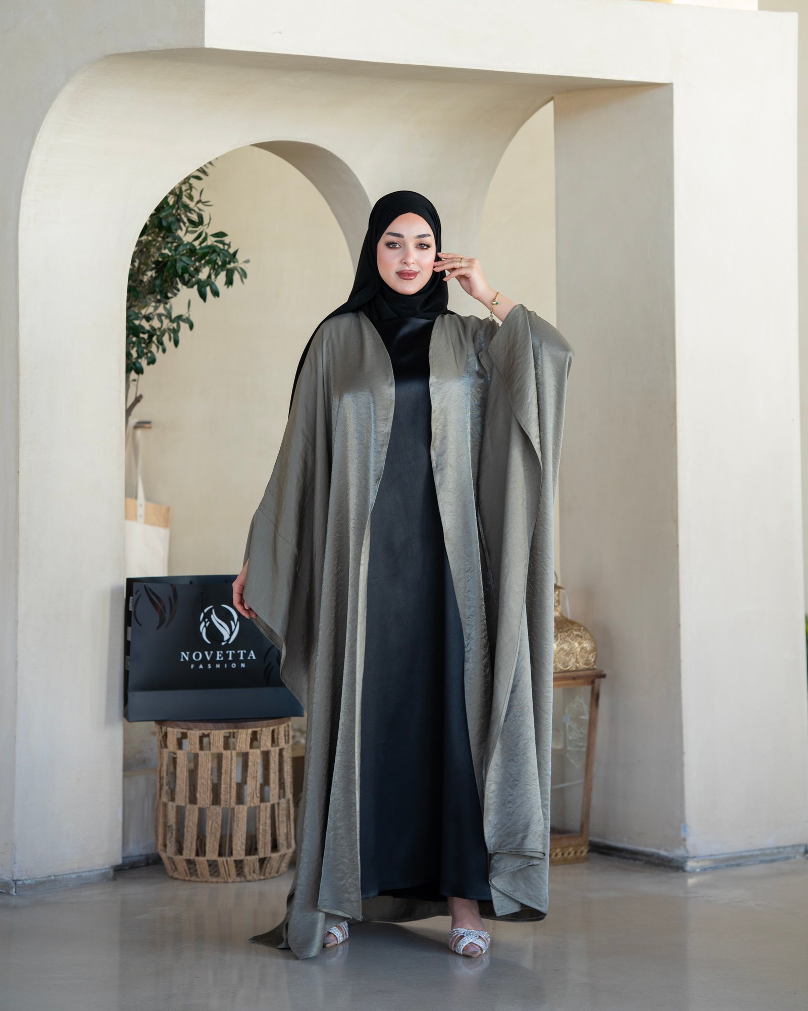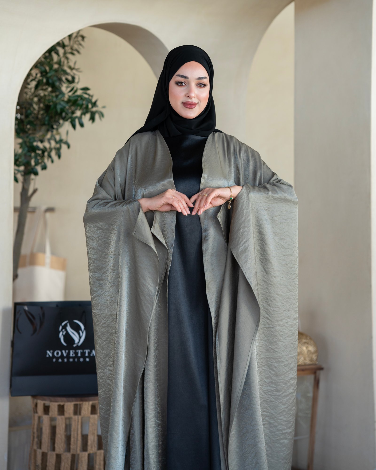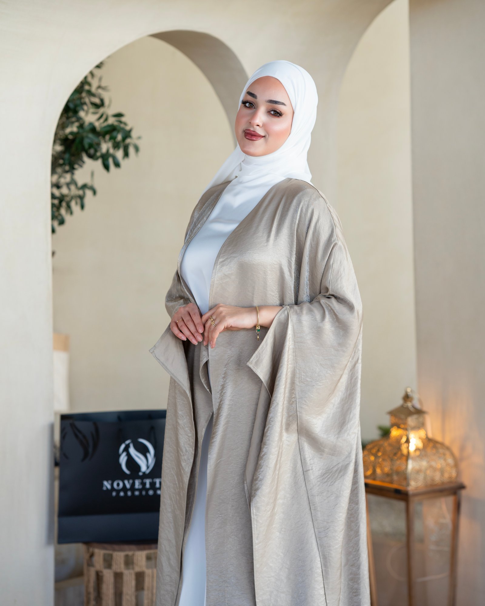 يتميز بقصة واسعة وانسيابية تمنح إطلالة محتشمة وأنيقة، مع خامة ناعمة بلمعة خفيفة تضيف لمسة فاخرة للمظهر.