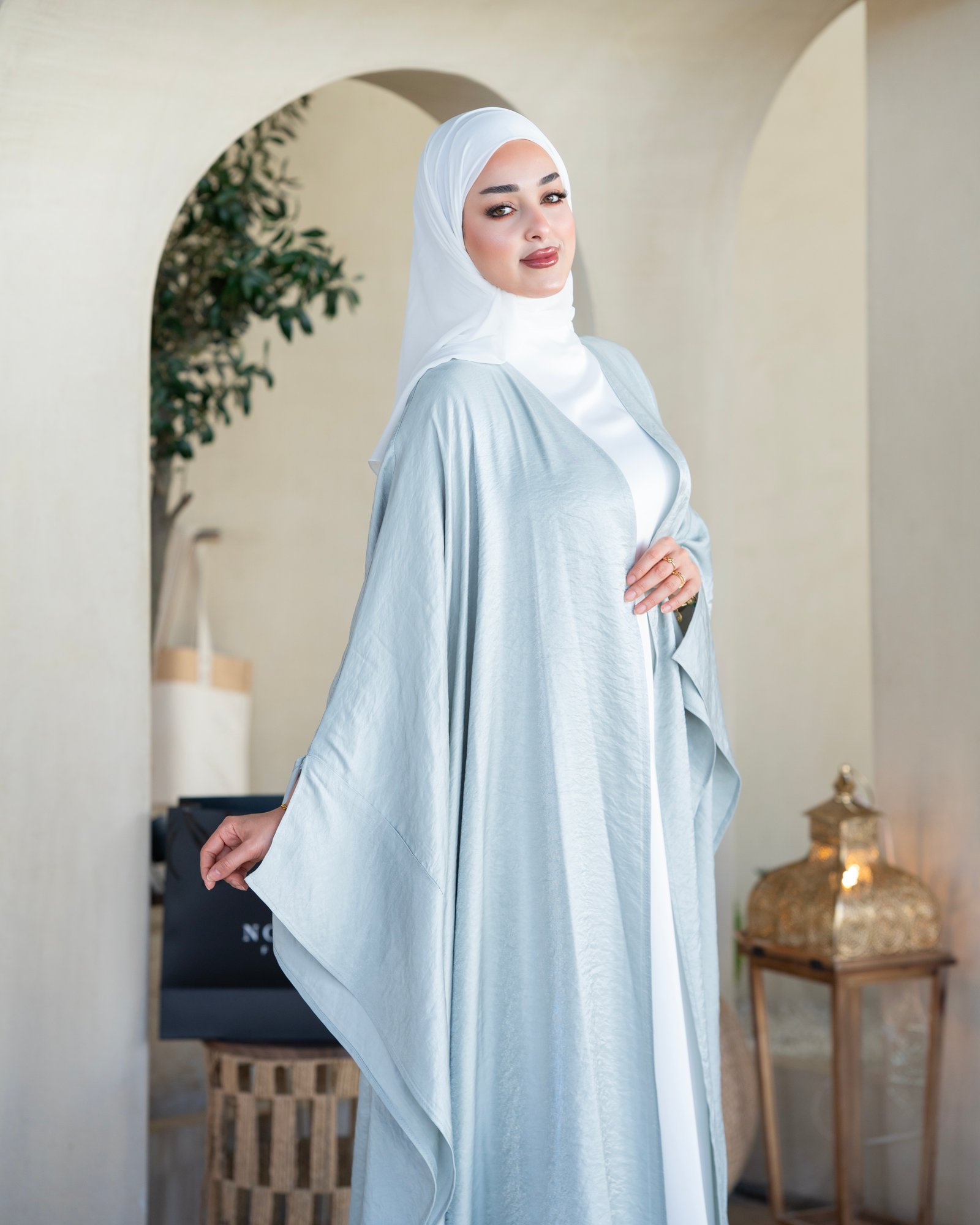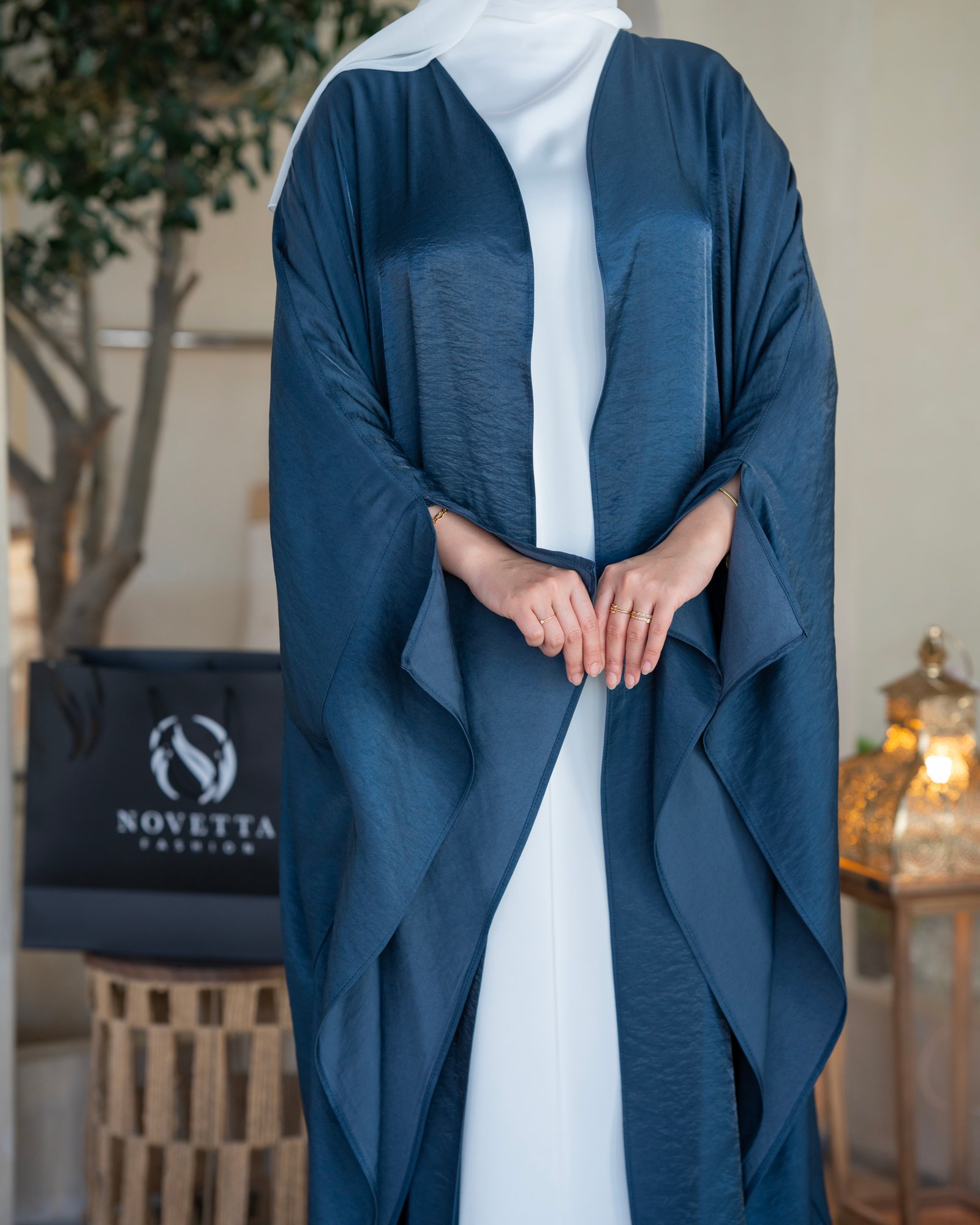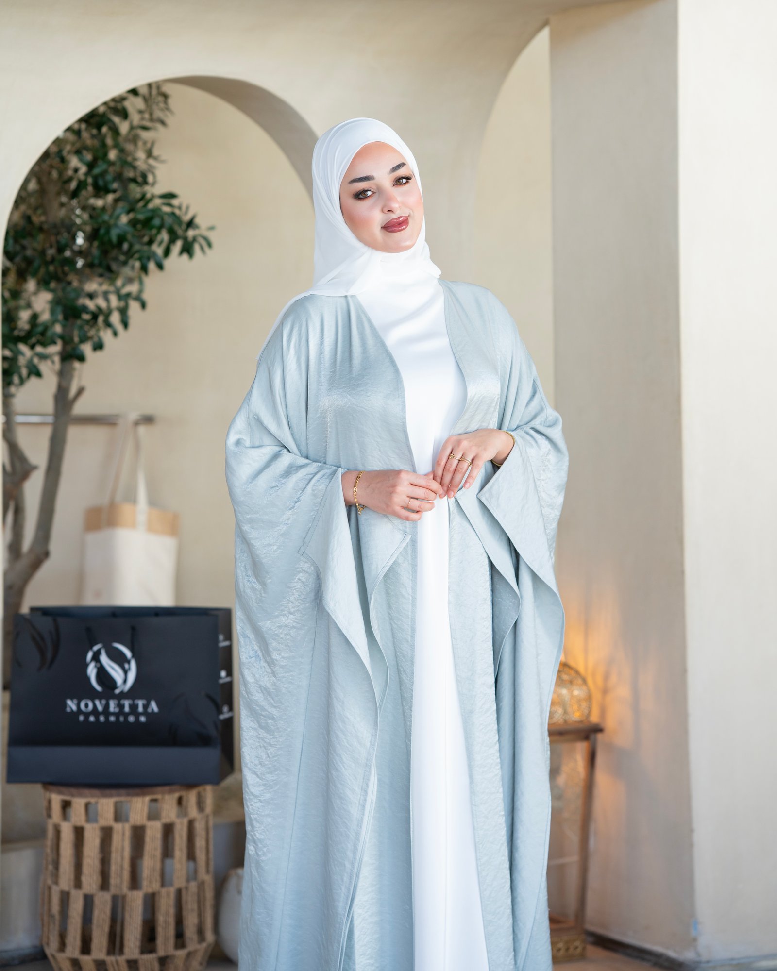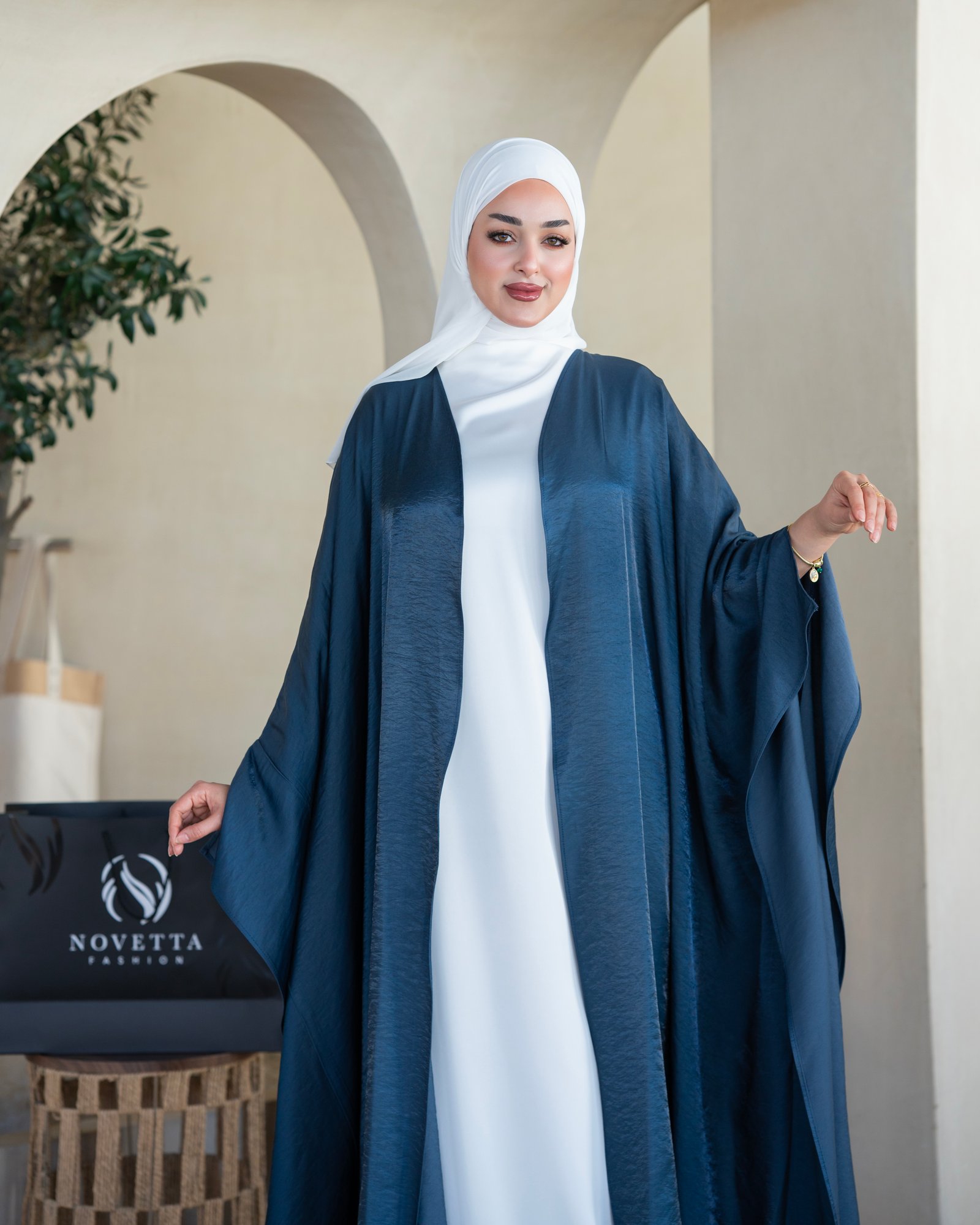 يتميز بقصة واسعة وانسيابية تمنح إطلالة محتشمة وأنيقة، مع خامة ناعمة بلمعة خفيفة تضيف لمسة فاخرة للمظهر.