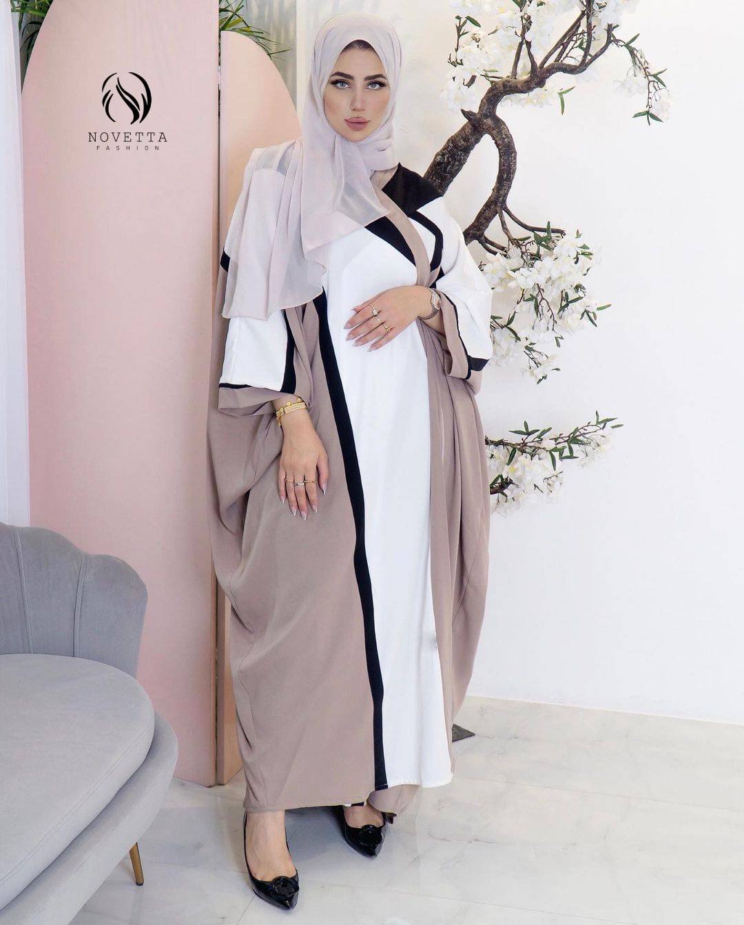 بشت بتدرجات الاوف وايت والبيج يتخلله خط أسود راقٍ… تصميم يعكس هدوء الأناقة وهيبة الحضور بخامة برادا هدلة وناعمة مع كوبا تقيلة وسواد داكن