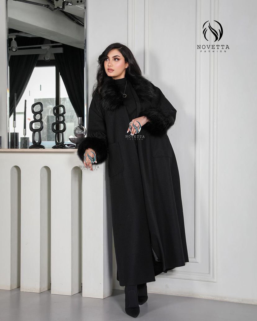 عباية شتوية أنيقة باللون الأسود، مزينة بلمسات فرو ناعمة على الرقبة والأكمام، بتصميم واسع وعملي يدمج الفخامة مع الدفء.بخامة جوخ تقيل مبطن والمقاسات واسعة ووافية